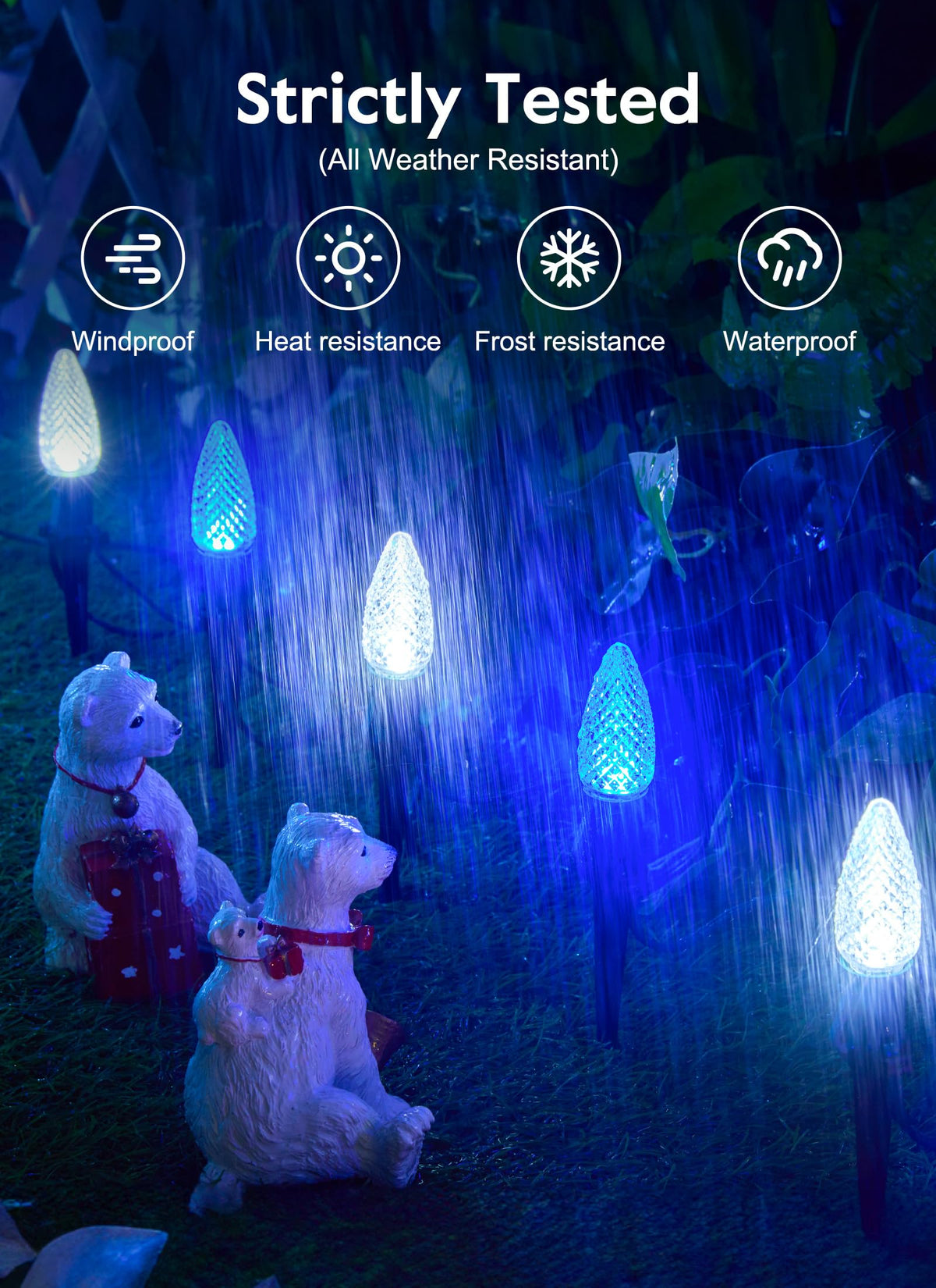 Q: Are these Christmas lights suitable for outdoor use?A: Yes, these Christmas lights are designed for both indoor and outdoor use, making them ideal for decorating pathways, driveways, and yards.