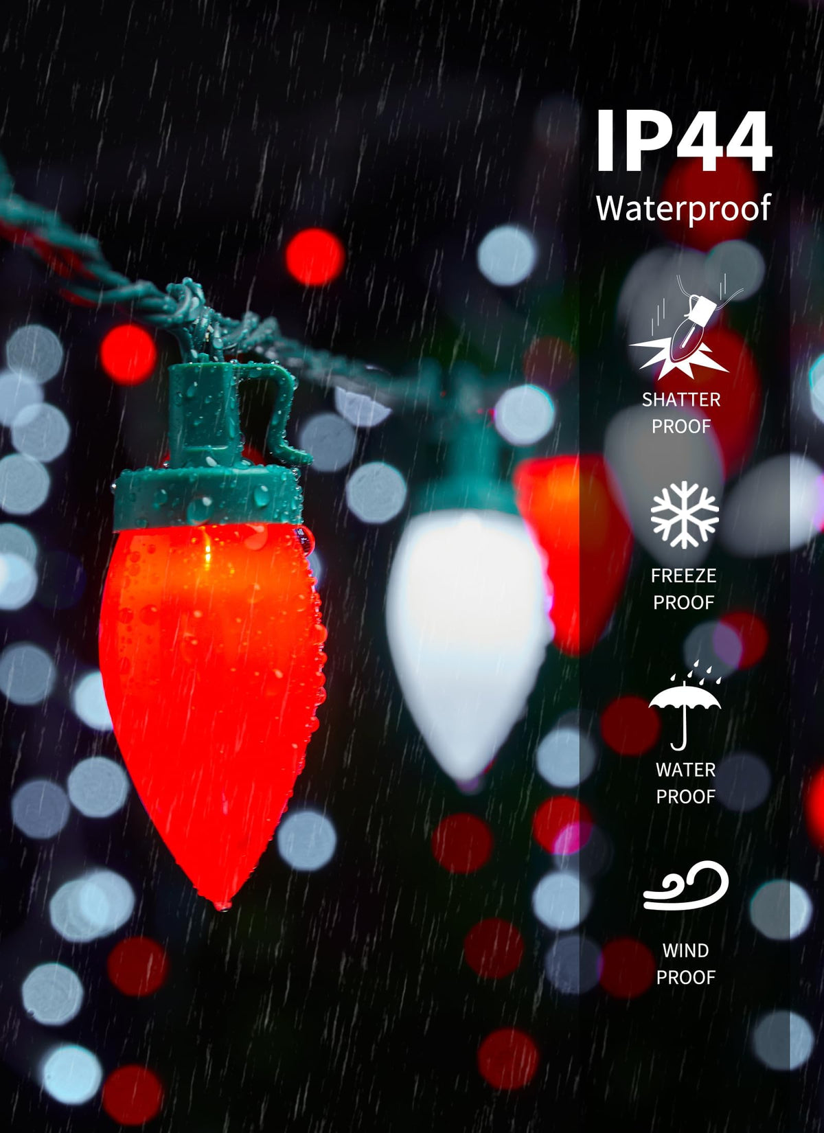 Q: Are the Brightown C9 Christmas lights suitable for outdoor use?A: Yes, the Brightown C9 Christmas lights are designed for outdoor use. They are waterproof and built to withstand various weather conditions, making them ideal for decorating patios, gardens, and rooflines during the holiday season.