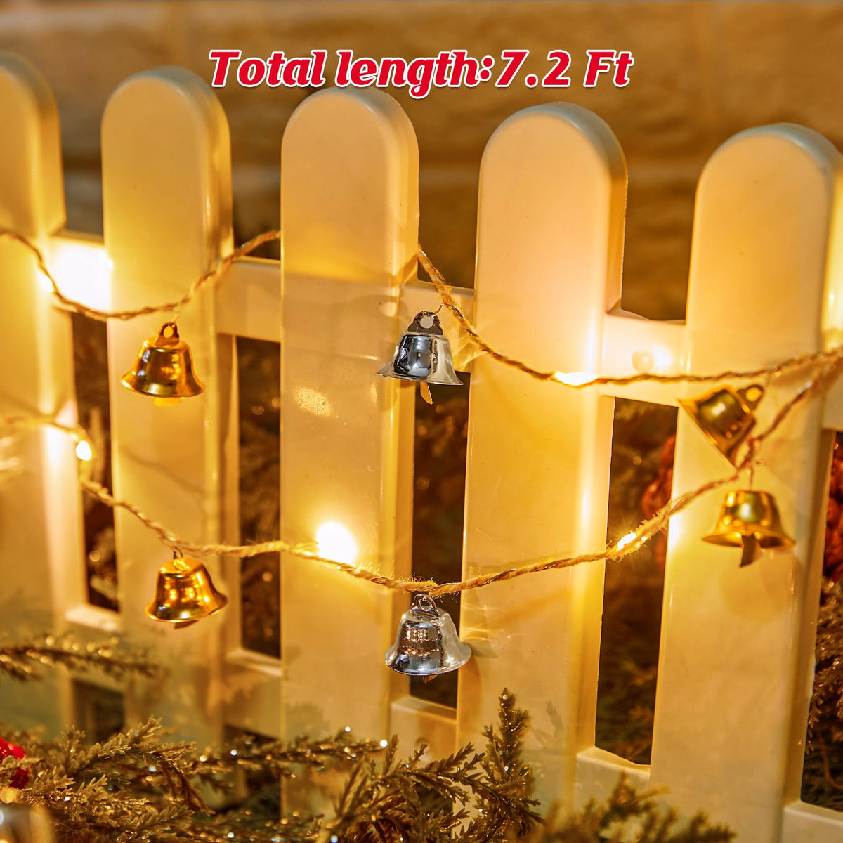 Brightown Christmas String Lights, 7.2Ft 20 Leds Battery Powered Bell String Lights For Christmas Winter Festival Indoor, Xmas Tree, Fireplace, Gift Decor, Gold/Silver Bells