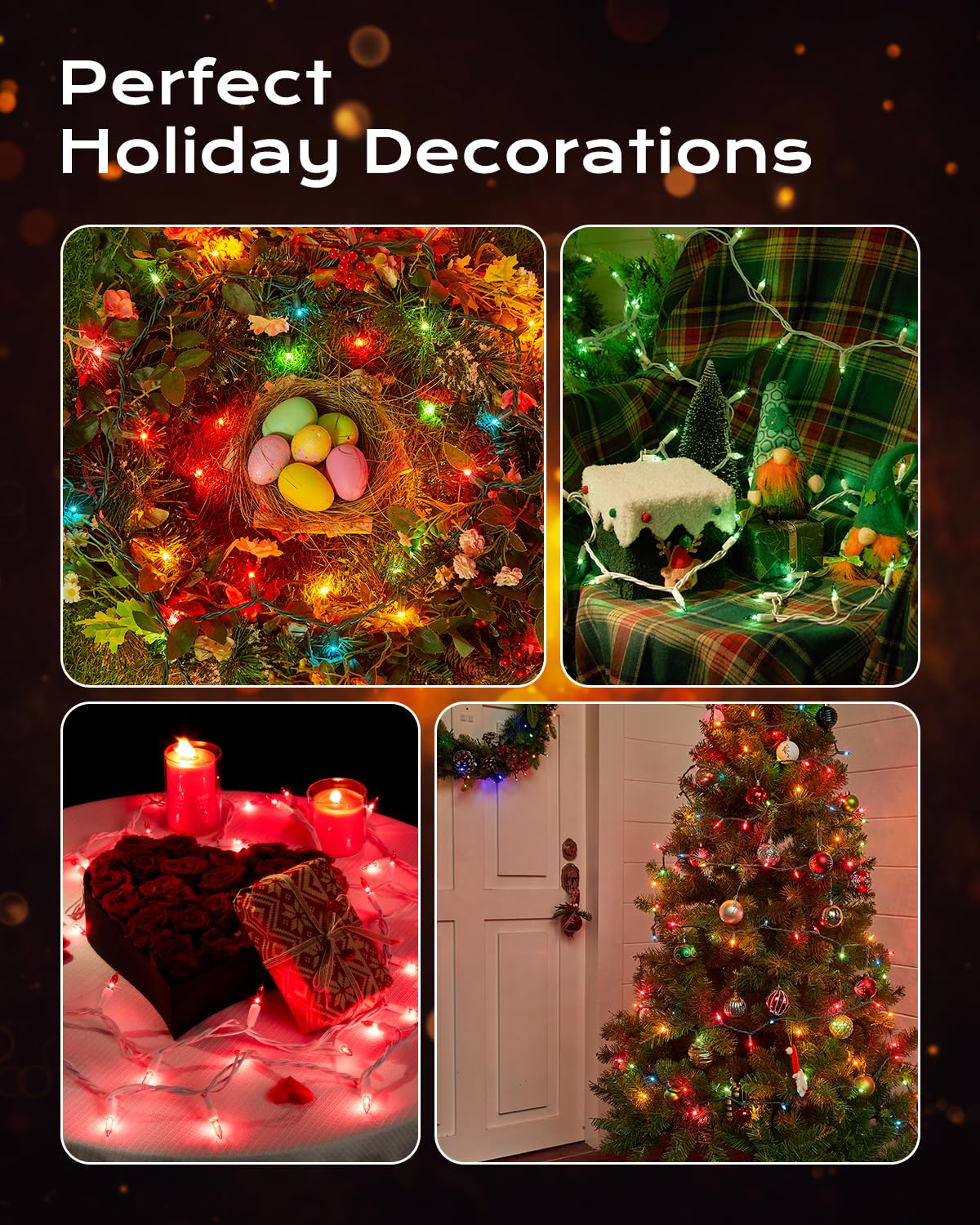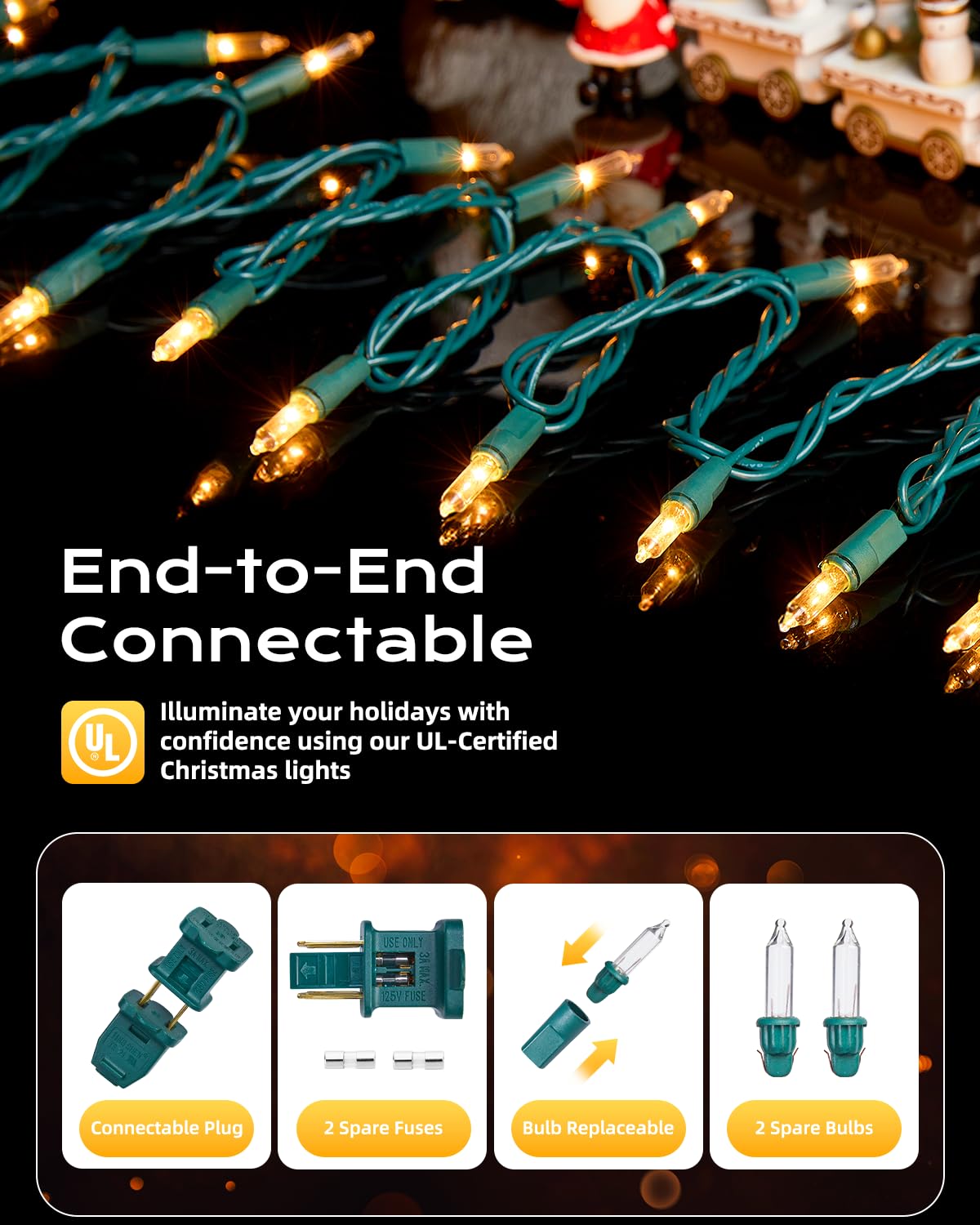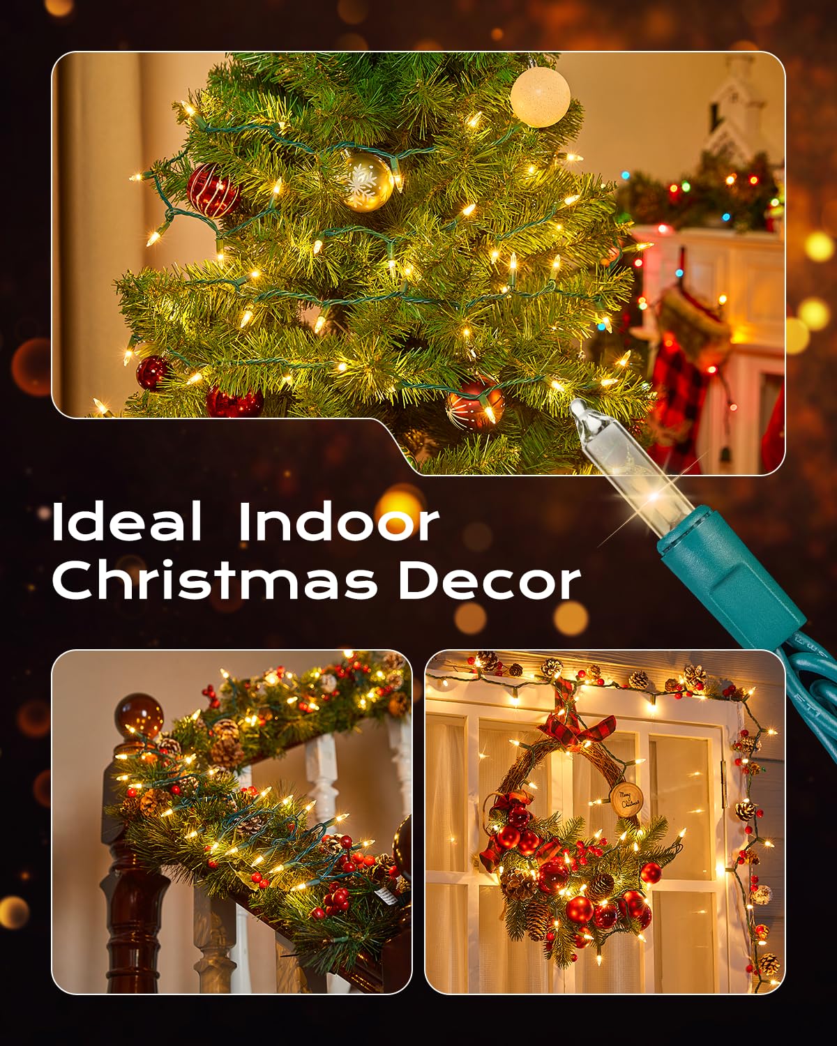 Brightown Clear Christmas String Lights 100-Count 25Ft Incandescent Bulb Mini Lights For Indoor Holiday Decor Christmas Tree Garland Wedding Party Multi-Use Festival Decoration Green Wire