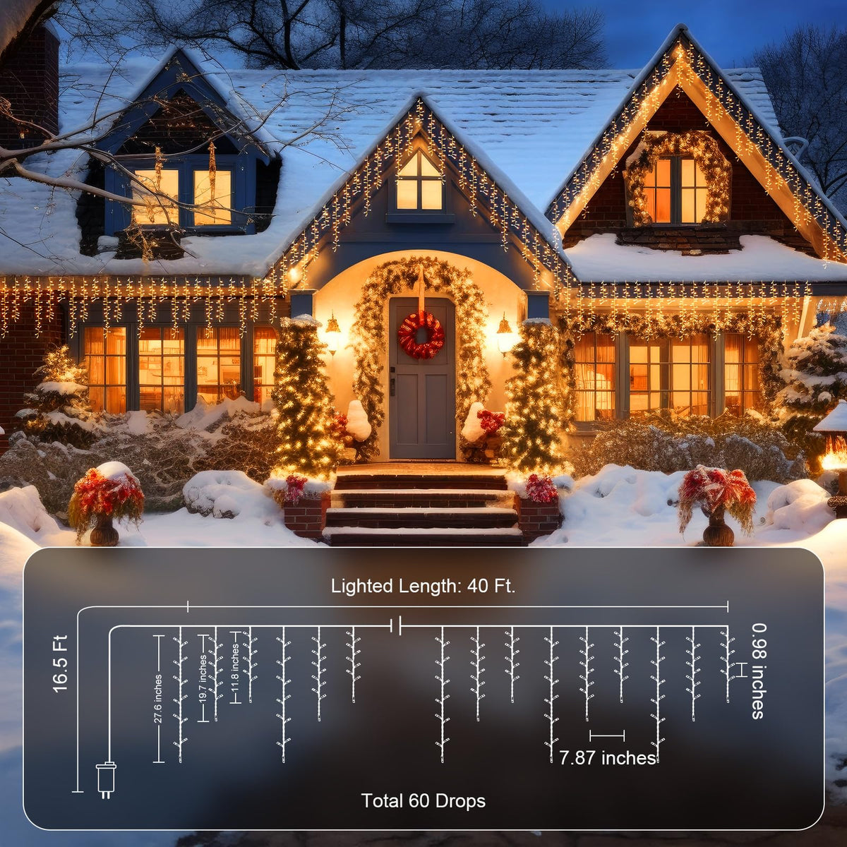 Brightown Cluster Icicle Lights Outdoor, 40Ft 1200 Led Icicle Christmas Lights With 60 Drop,12 Modes, Icicle String Lights With