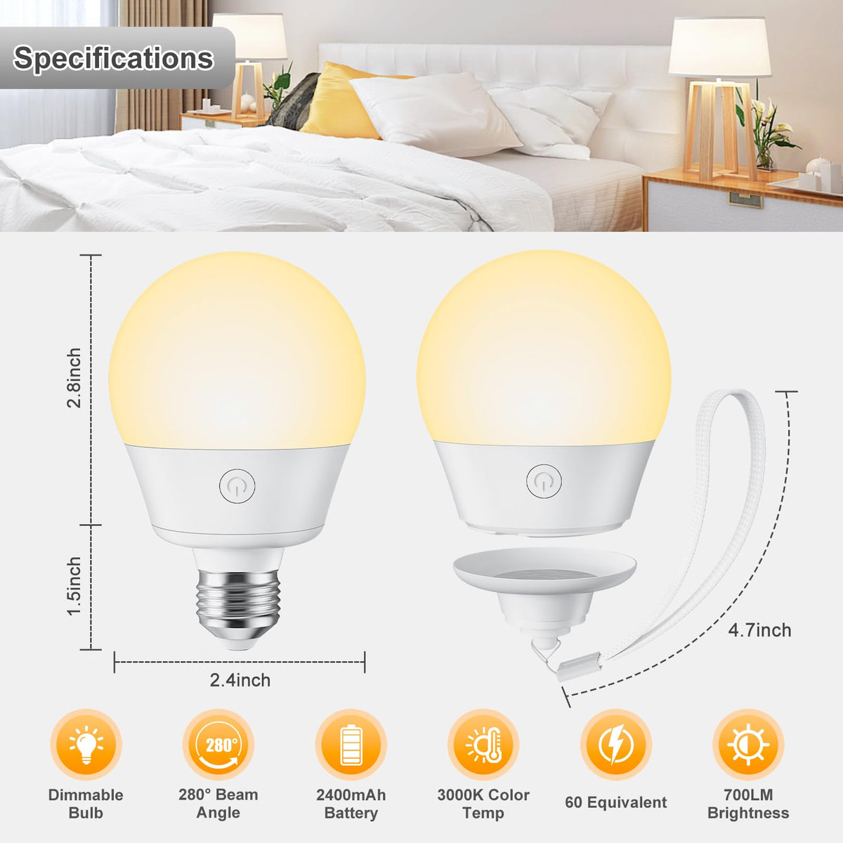 Brightwon 4 Pack E26 Rechargeable LED Light Bulb with Detachable Magnetic Base - Brighten Up Your Life