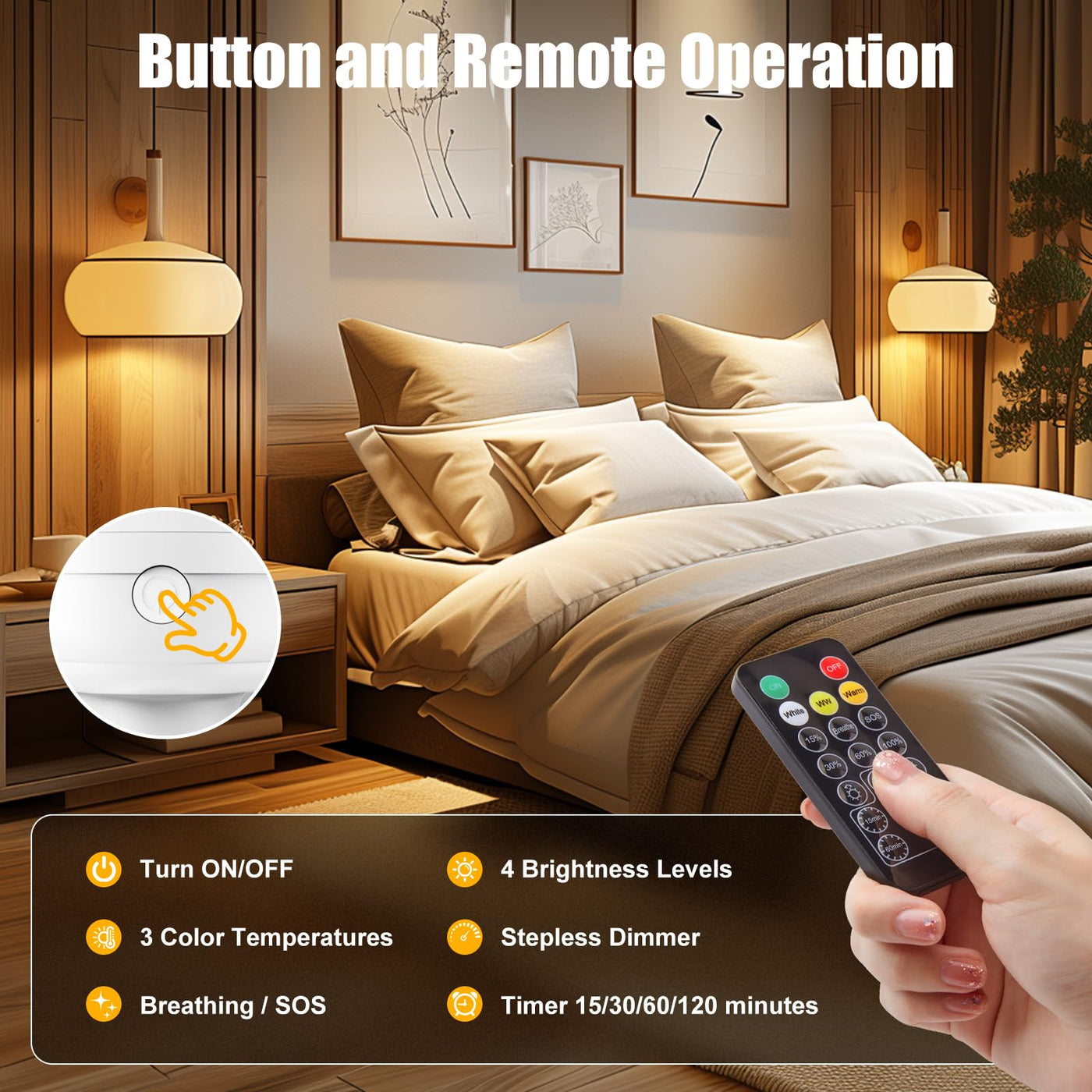 Features ? USB Rechargeable LED Light Bulb with Remote, Dimmer and Timer ? Upgraded 2000mAh Battery Ensure Super Bright Glow ? 3 Lighting Colors ( Warm White / Natural White / Cold White ) ? 4 Timer Settings ( 15 min / 30 min / 60 min/ 120 min ) ? Additional Base with Lanyard Included for Easy Hanging ? Super Long 25,000-hour Lifespan ? Great for Indoor Use and Outdoor Use like pantry, closet, tent, camping, hiking, fishing,etc.