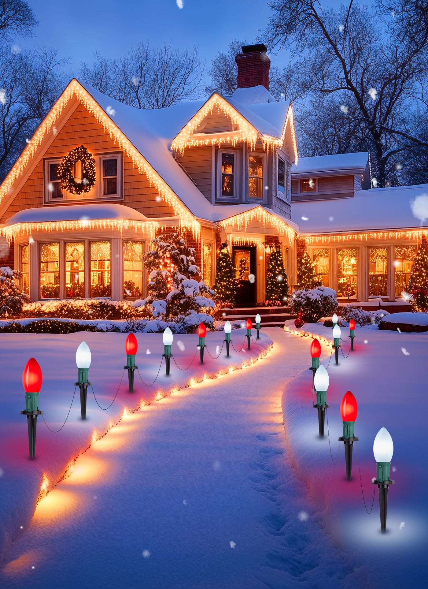 Christmas Yard Decorations Outdoorperfect For Creating A Charming Atmosphere During Christmas.Christmas Lights For Pathway With Green Wire Are Perfect For Backyard, Garden, Driveway, Walkway And Courtyard. These Commercial-Quality Christmas Outdoor Lights Are Suitable For Both Indoor And Outdoor Use.Specificationsbulb Type: C9Lighting Color: Red And Whiteshade Material: Plasticbulb Count: Each Set Has 25 Bulbsbulb Spacing: 15 Incheslead Cord Length: 18 Inches End Cord Length: 6 Inchesmax Connectable Strands: 700 Bulbs Diameter Of Bulb: 1.14 Inch Cord Type: Green 20Awg Xtwwaterproof Grade: Ip44Bulb Information:0.6W, 120V, C9/E17 Base Length: Each Set Is 32 Feet Package Listchristmas Yard Lights User Manual Stakes