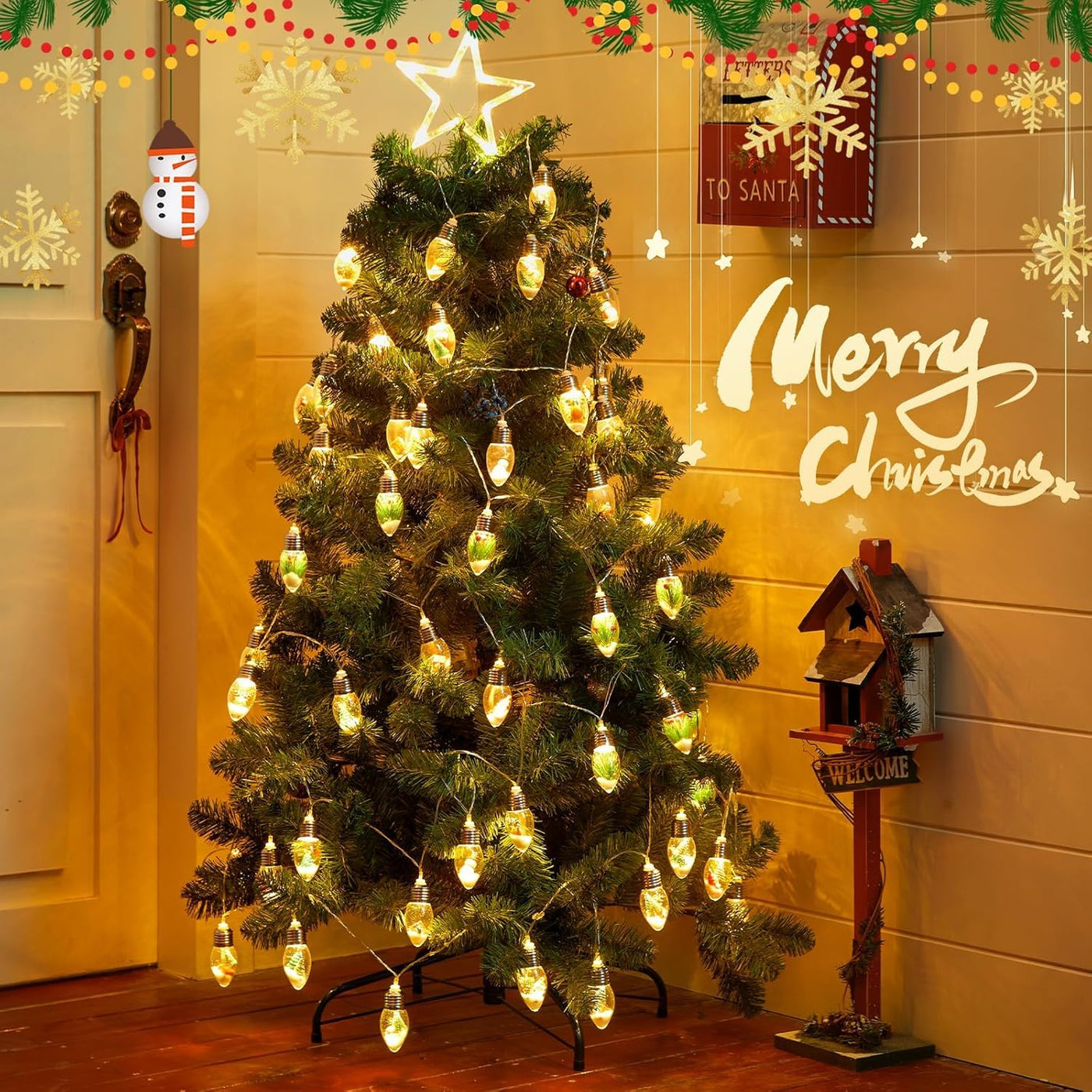 Q: What color are the lights, and how do they affect the ambiance?A: The lights emit a warm white color, creating a cozy and festive atmosphere, perfect for Christmas celebrations and decorations.