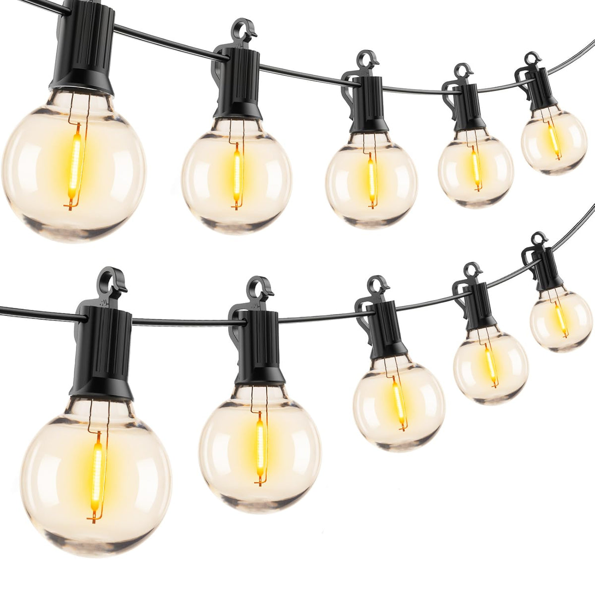 Brightown Outdoor String Lights - 2 Pack Globe Patio Lights 50 Ft With 25 G40 Shatterproof Bulbs, Waterproof Connectable Commerc