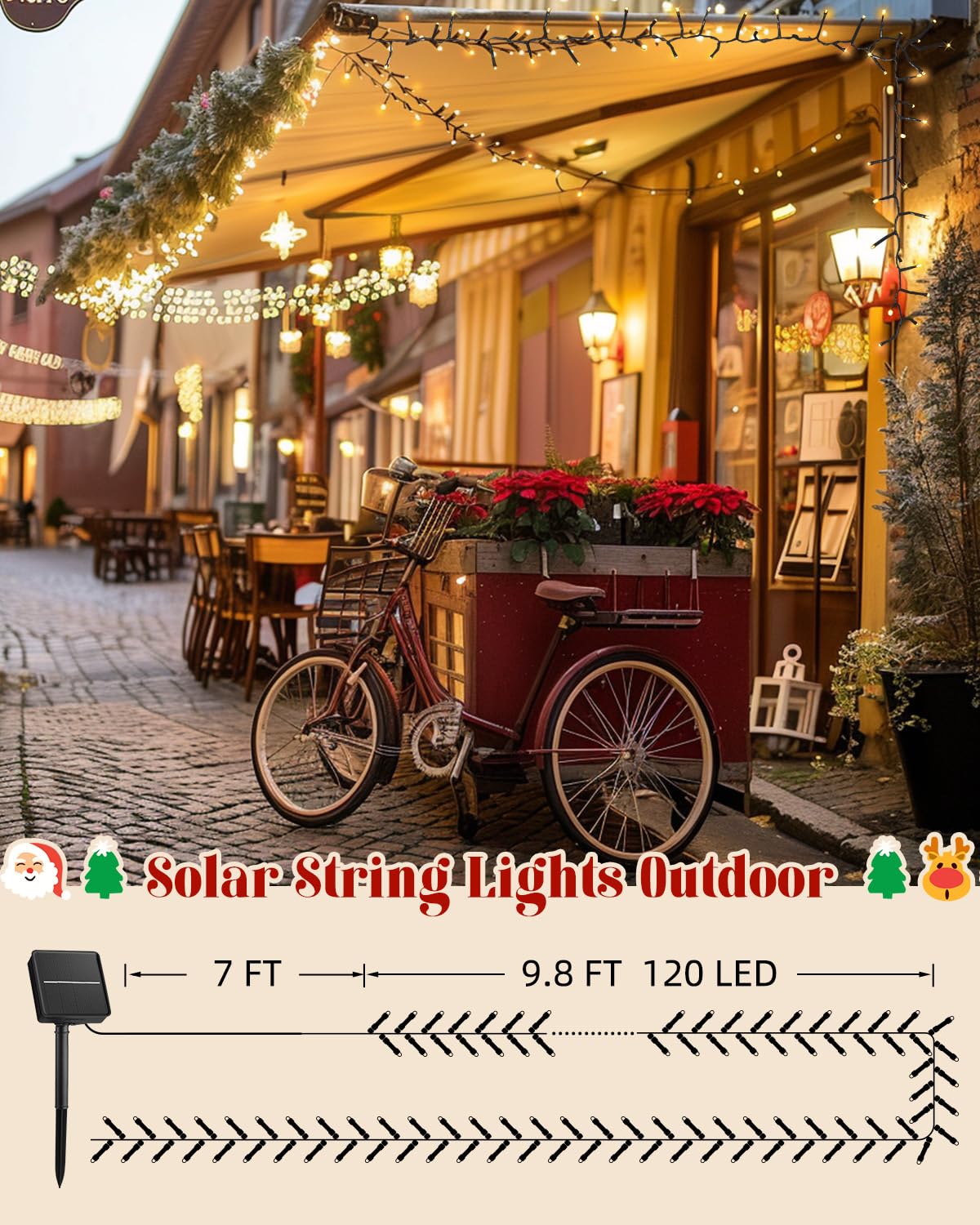 Brightown Solar Christmas Lights Outdoor, 16.8Ft 120 Led Solar String Lights For Outside With 8 Modes, Solar Cluster Lights Twinkle Lights Waterproof For Yard Fence Balcony Party Xmas Tree Decorations