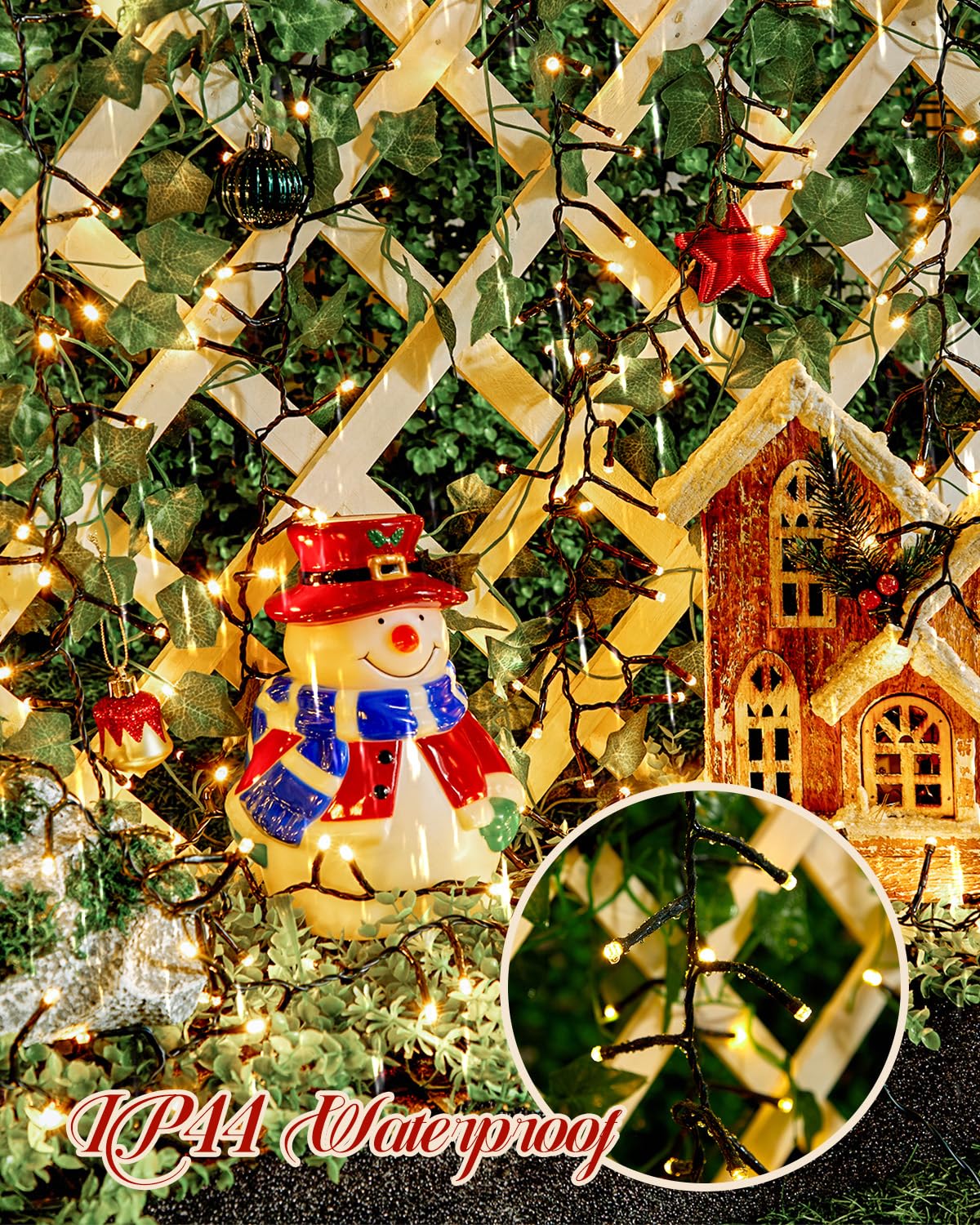 Q: Are the Brightown Solar Christmas Lights waterproof?A: Yes, these solar string lights have an IP44 waterproof rating, making them suitable for both indoor and outdoor use, and able to withstand various weather conditions.
