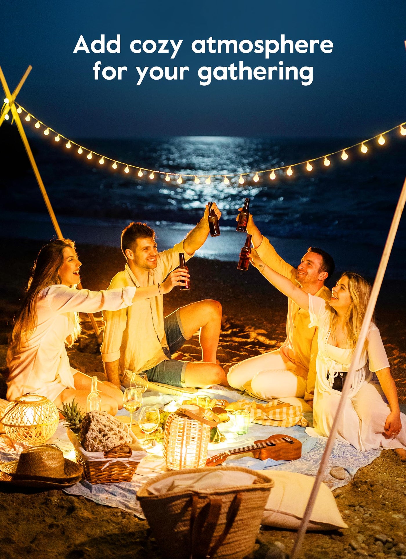 Q: What is the total length of the Brightown solar string lights and how many bulbs do they have?A: The Brightown solar string lights come in 2 packs with a total length of 39 feet and include 120 mini LED globes for a bright and inviting glow.