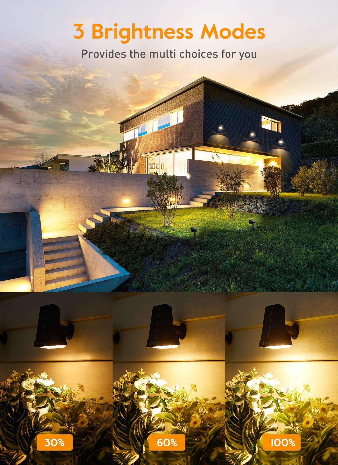 Brightown Solar Lights Outdoor Waterproof Ip67, [Cool & Warm Light 2-In-1] Solar Spot Lights Outdoor, 2 Colors 3 Brightness Leve
