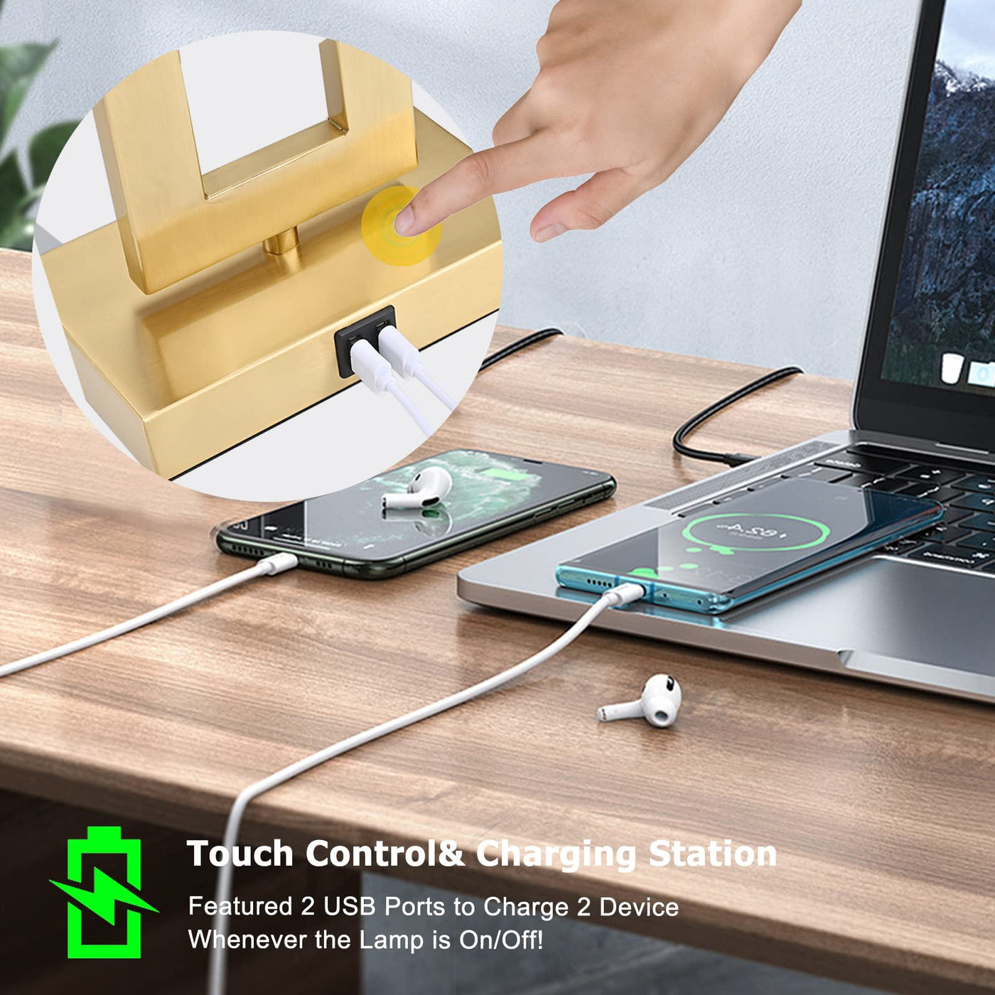 - **Touch Control & 3-Way Dimmable**: Enjoy the convenience of touch control with three brightness settings—low for a soothing night light, medium for relaxing, and high for focused work or study. Easily adjust the lighting with a simple tap on any gold metal part, eliminating the need for traditional switches.