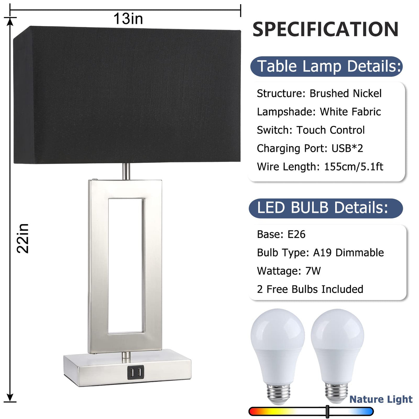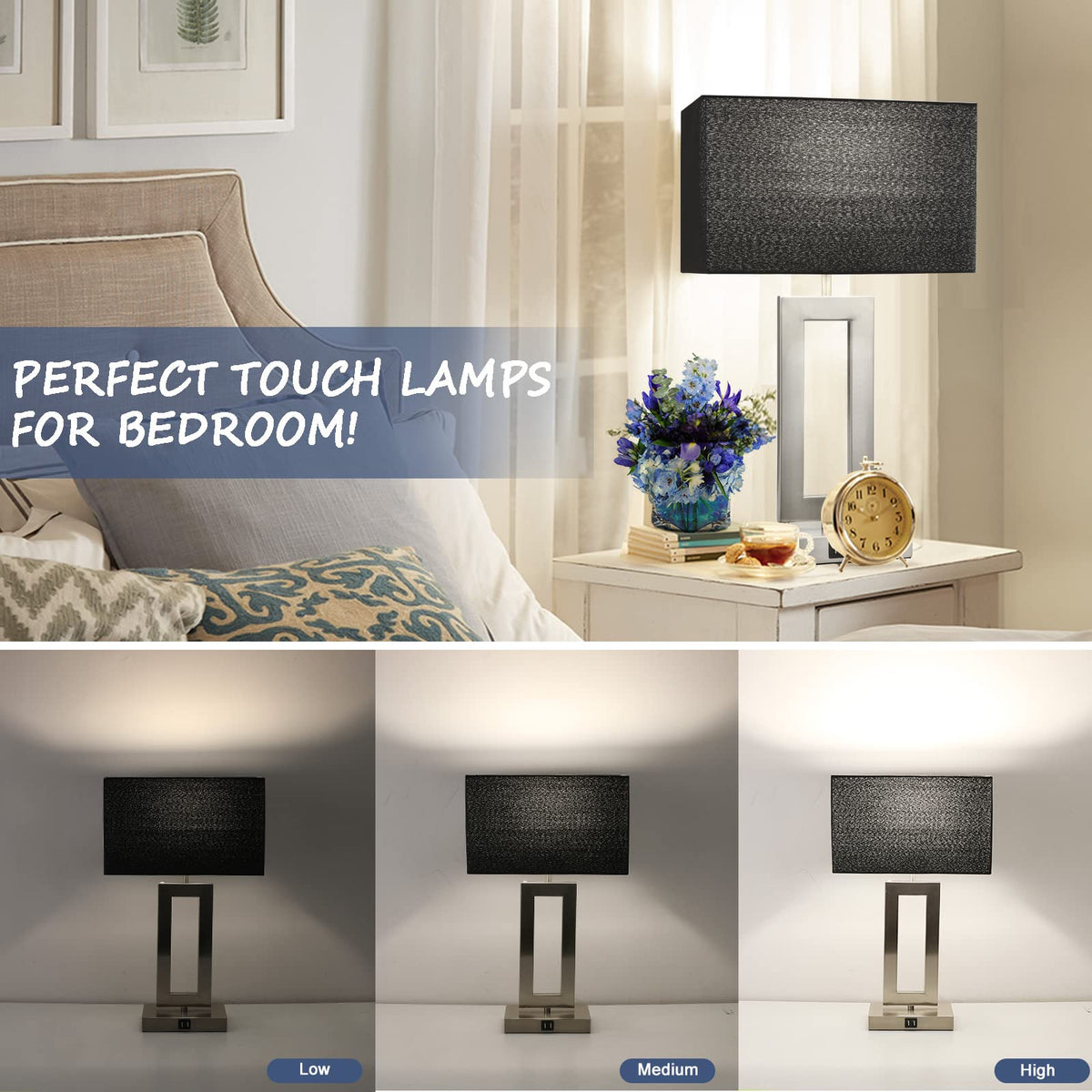 Brightwe 22'' Black Touch Table Lamps Set Of 2 With Usb Ports, 3-Way Dimmable, Led Bulbs