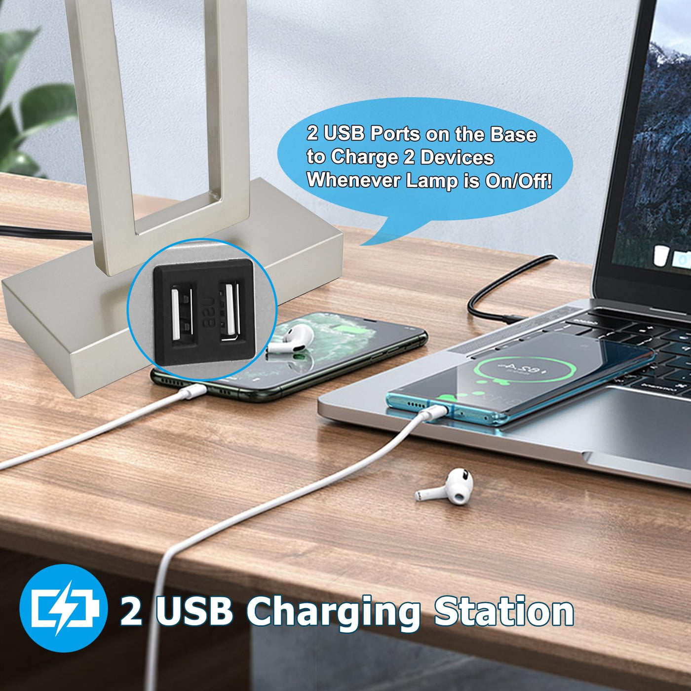 Q: How do the USB charging ports work on these lamps?A: Each lamp is equipped with dual 5V/2.1A USB ports that allow you to charge two electronic devices at the same time, even when the lamps are turned off. This feature helps keep your space organized by reducing cord clutter.