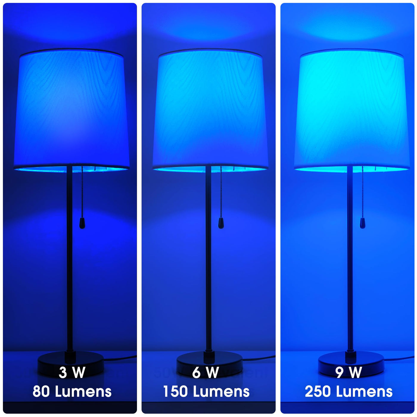 - **Versatile 3-Way Illumination**: Experience three lighting levels (30W, 70W, 100W equivalent) with a simple switch. The blue light adds a unique touch to your decor while being energy-efficient—using just 3/6/9 watts to replace traditional incandescent and halogen bulbs.