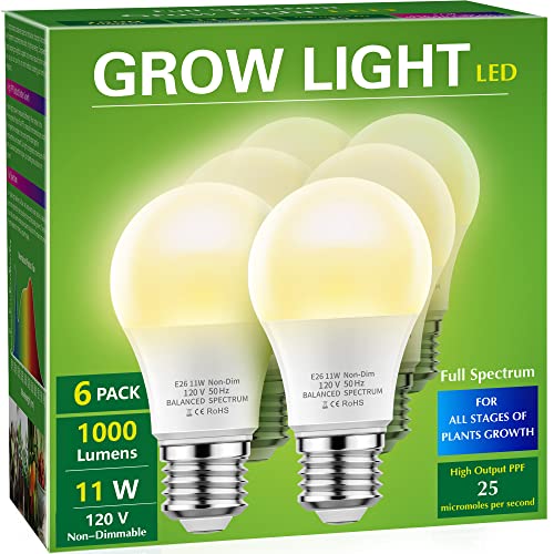 Briignite Led Grow Light Bulbs, Full Spectrum A19 E26 Base, 11W, 6 Pack For Indoor Plants