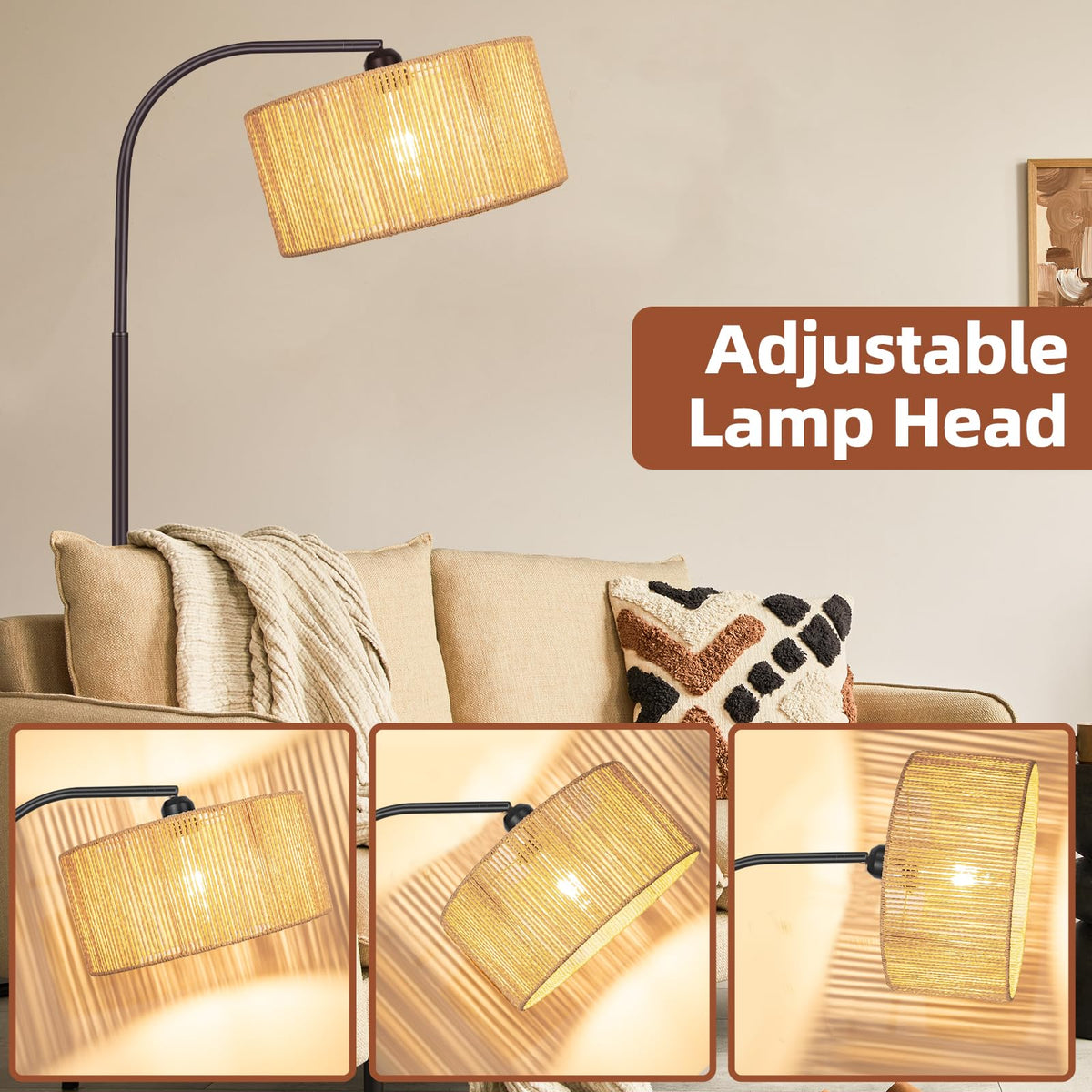 Brilvibera Boho Floor Lamp With Dimmable Bulb Nartual Rattan Adjustable Lampshade, Bronze Rustic Farmhouse Floor Lamps For Living Room, Bedroom, Office, Classroom