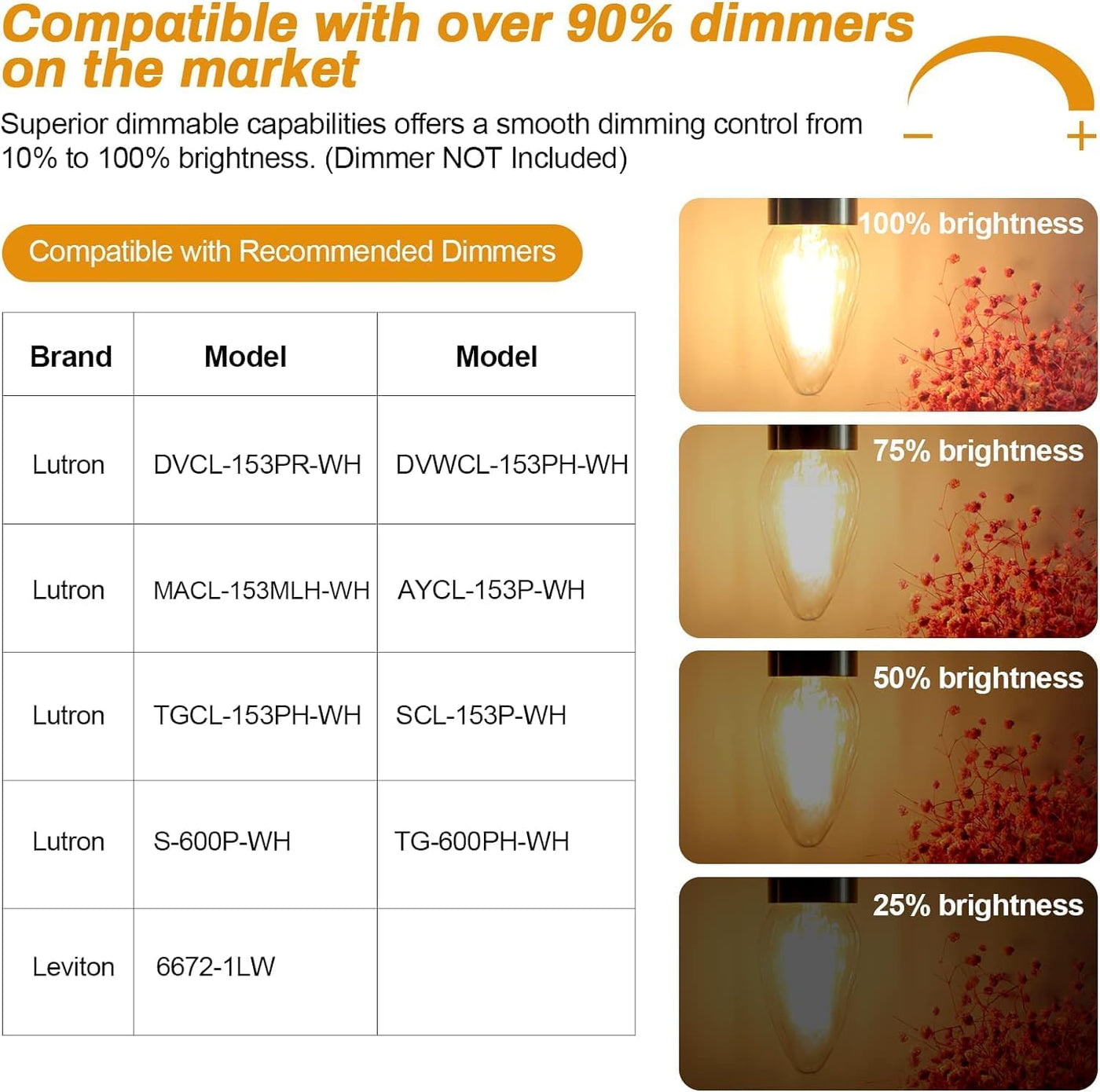 Q: Is the BRIMAX F15 bulb compatible with dimmer switches?A: Yes, the BRIMAX F15 8W LED bulb is dimmable, allowing you to adjust the brightness to your preference when used with compatible dimmer switches.