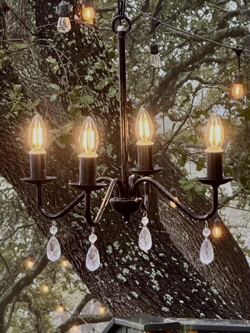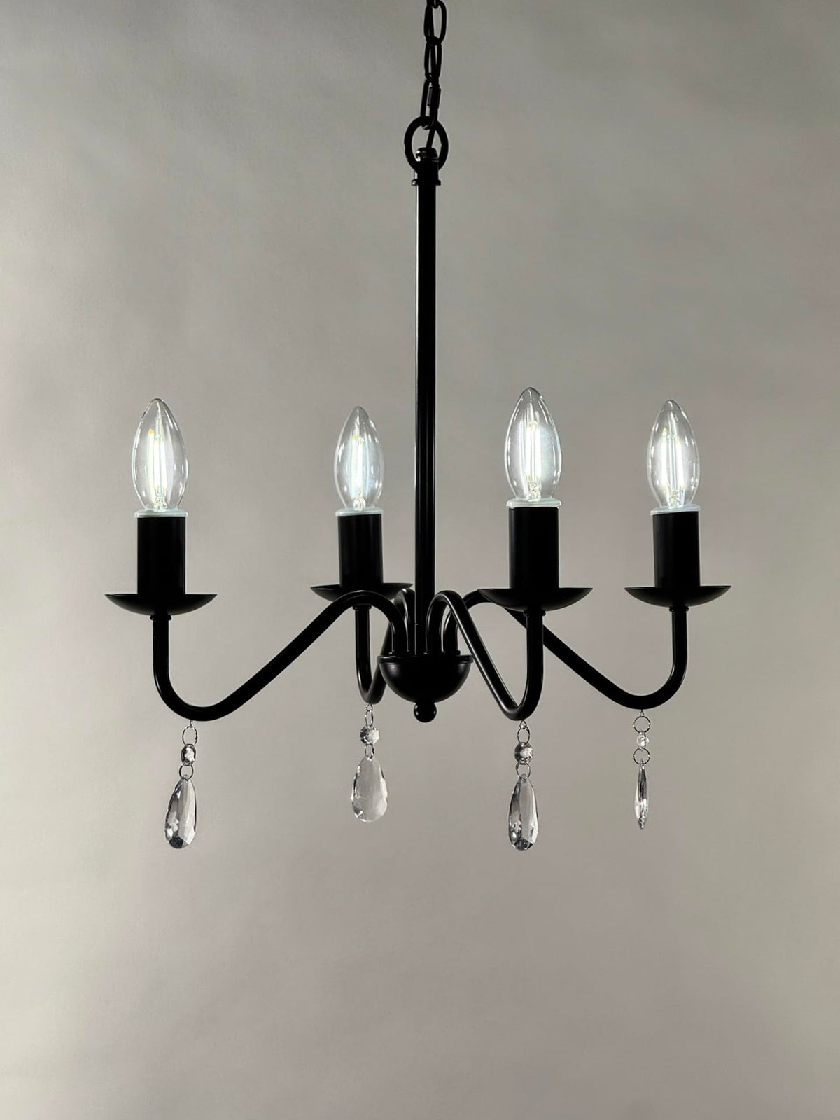 Brink House Black Farmhouse Outdoor 4 Light Plug-in Chandelier H15 xW17 , curved black arms, and Low Voltage IP65 water resistant electrical components