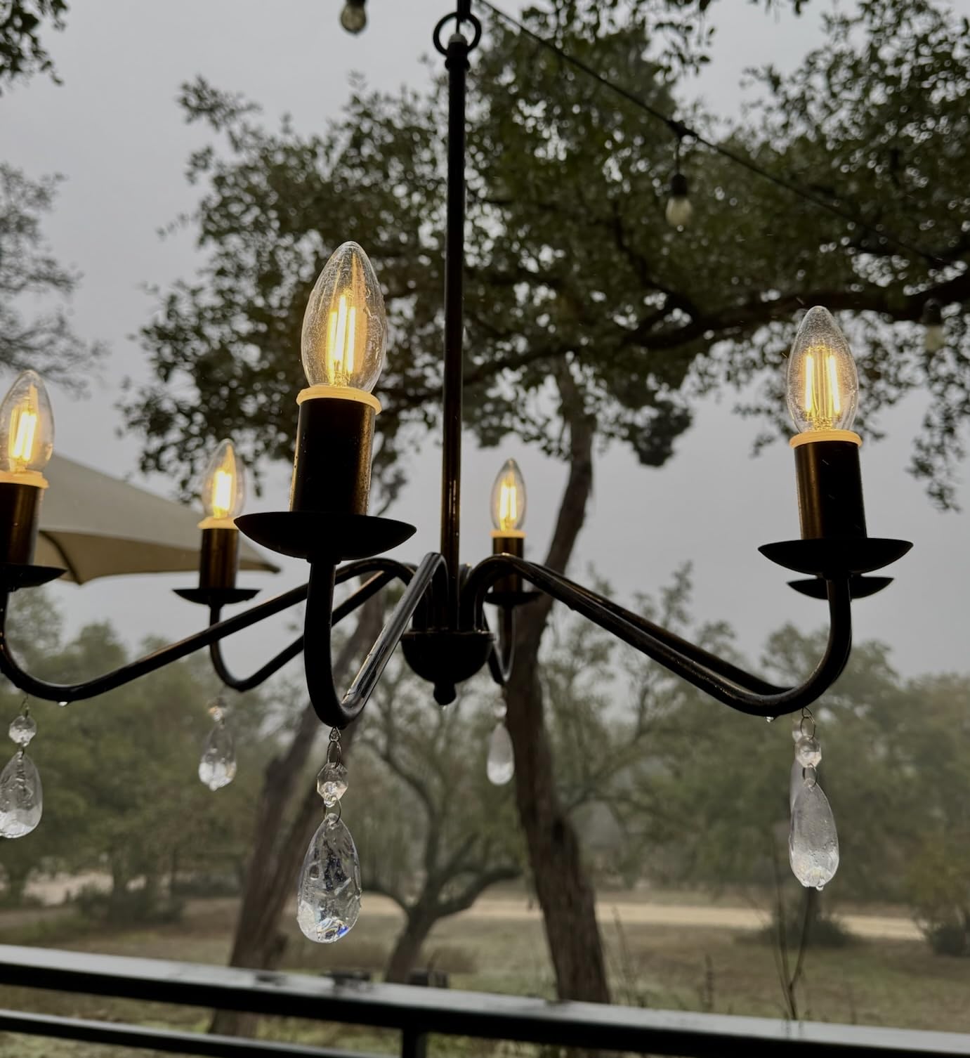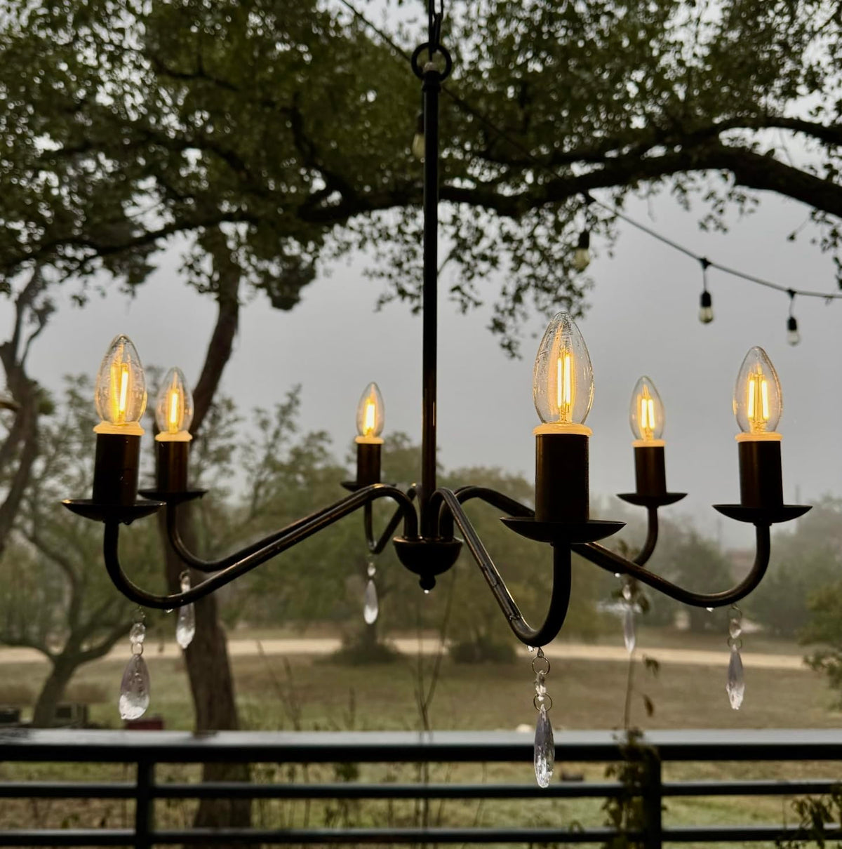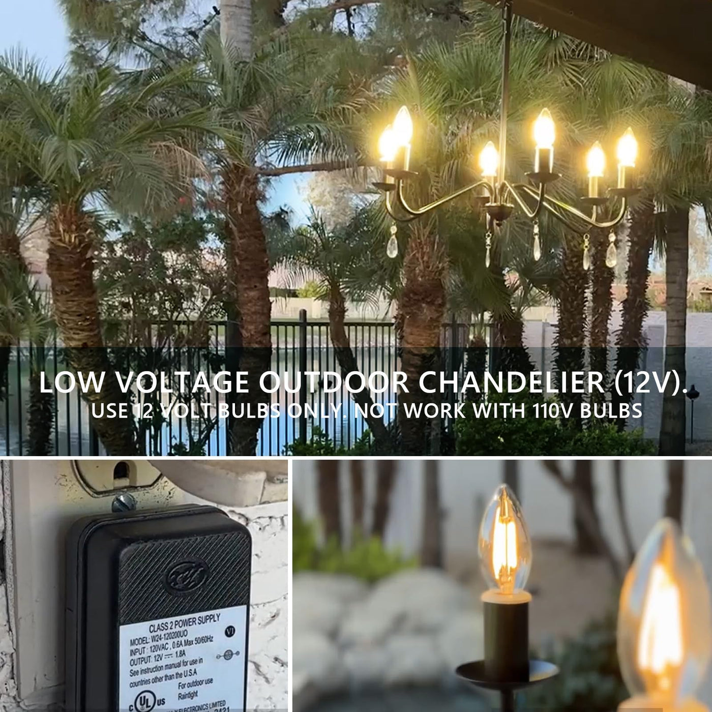 Brink House Black Farmhouse Outdoor 6 Light Plug-In Chandelier H19 Xw23 , Curved Black Arms, And 12 Volt, Ip65 Water Resista
