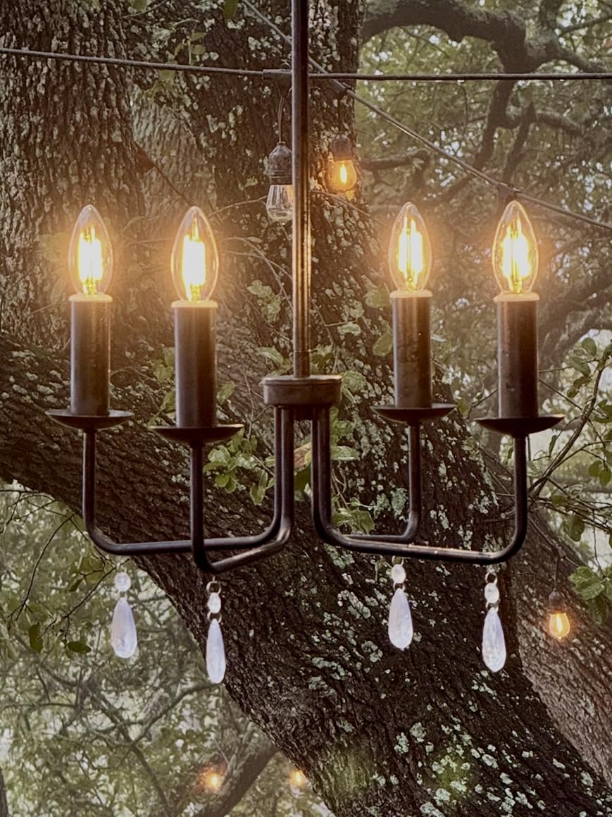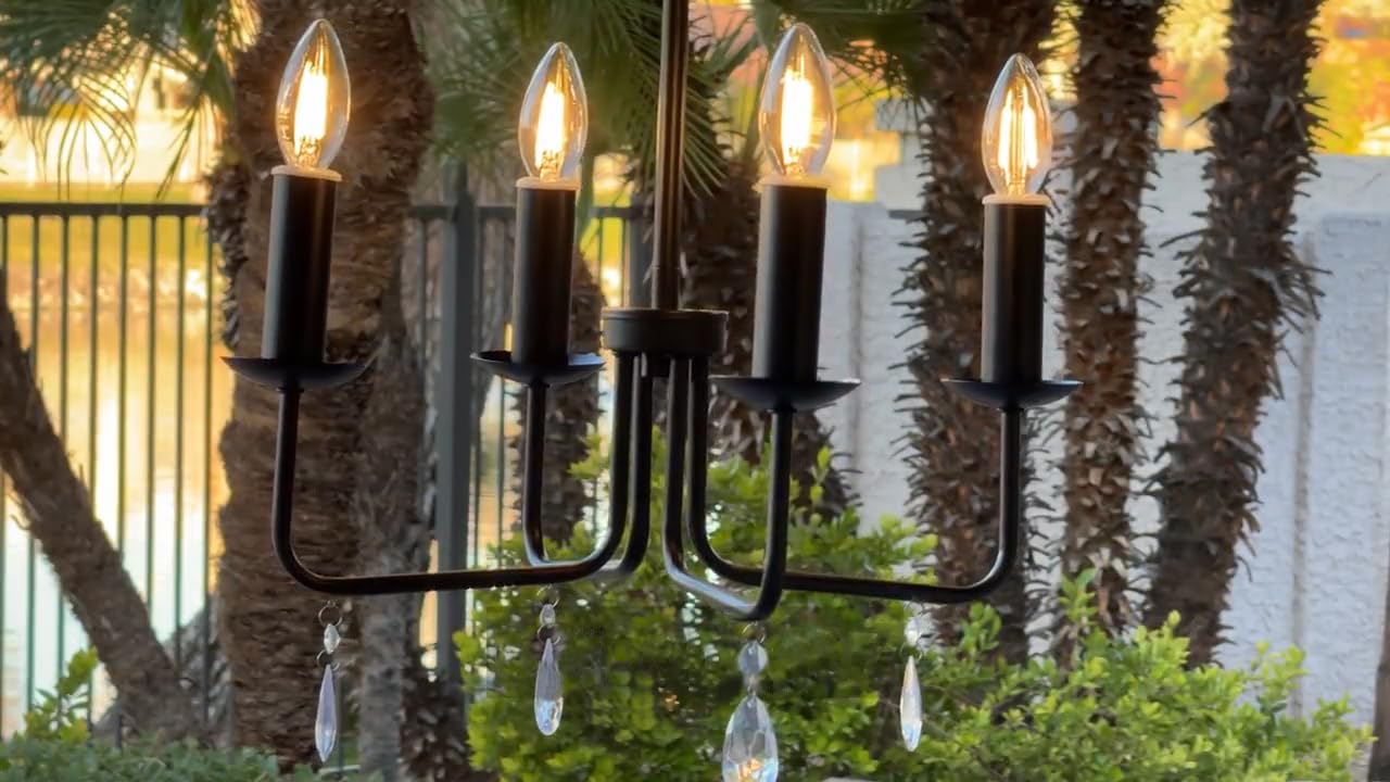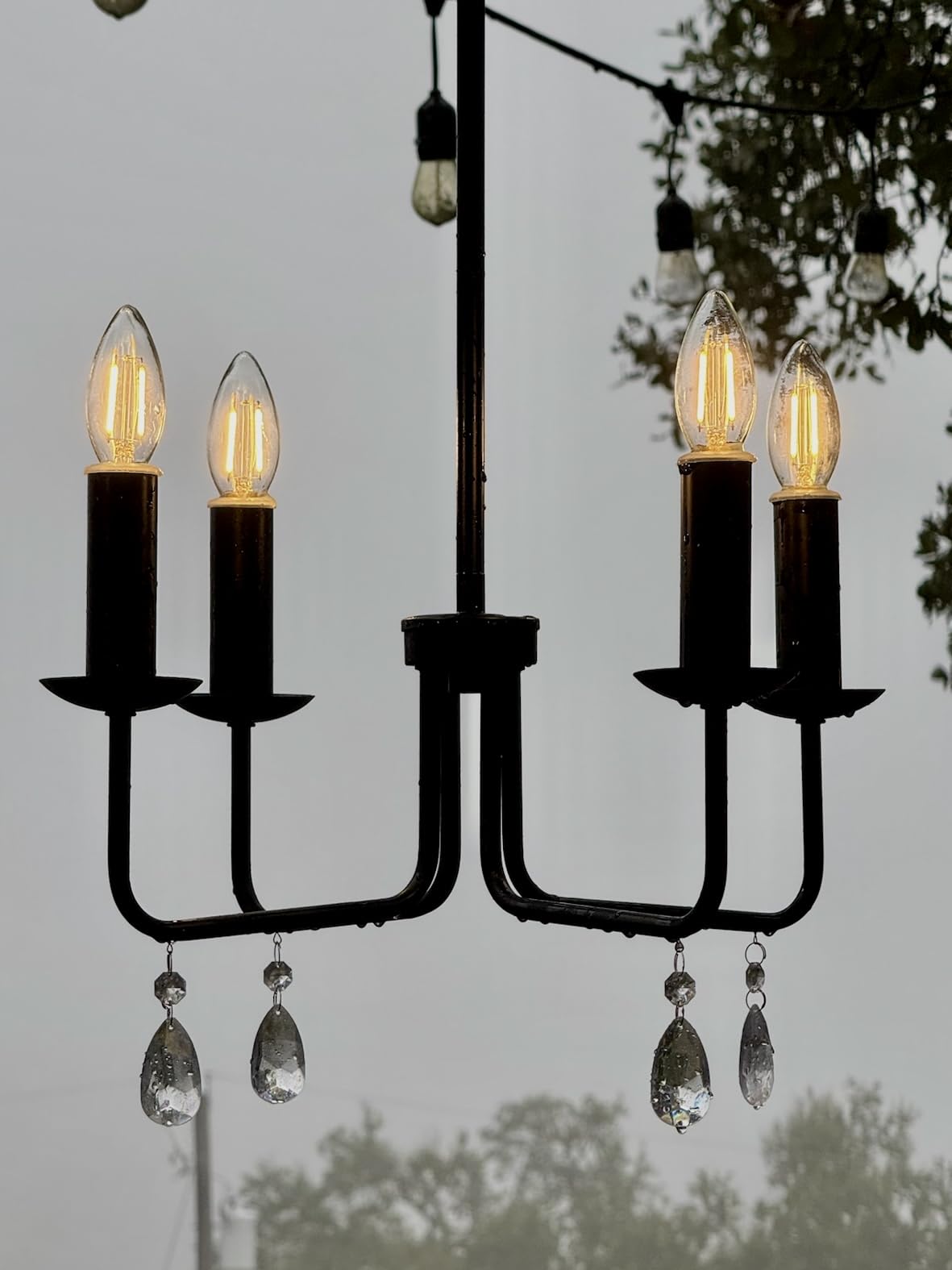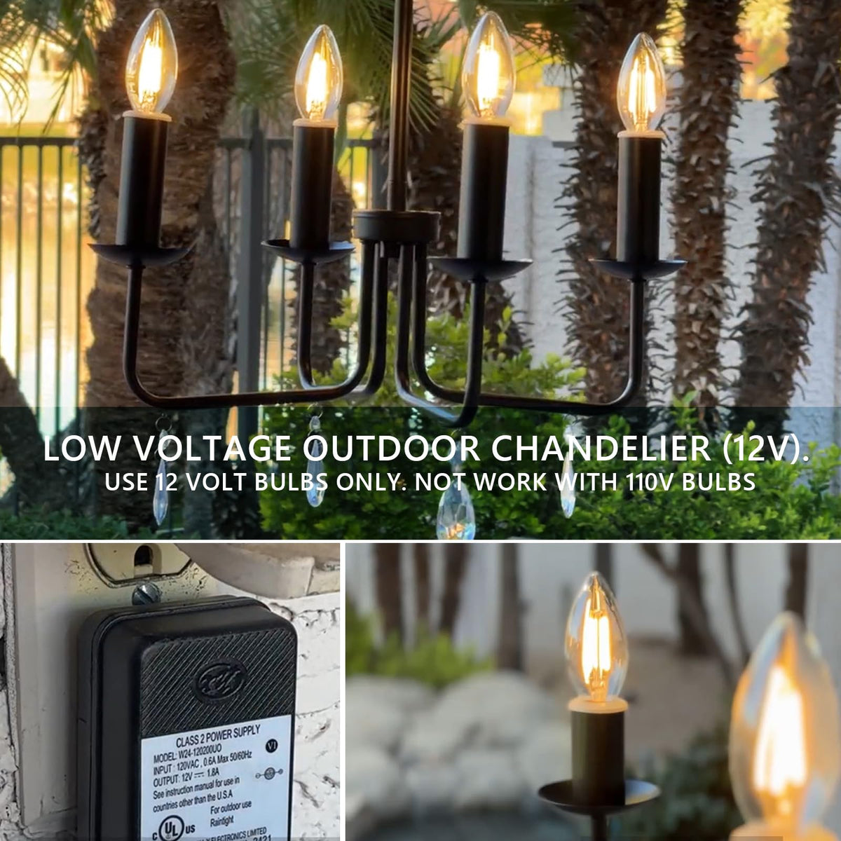 Brink House Farmhouse Outdoor 4 Light Plug-in Chandelier H19 xW17 , straight black arms, and Low Voltage IP65 water resistant electrical components
