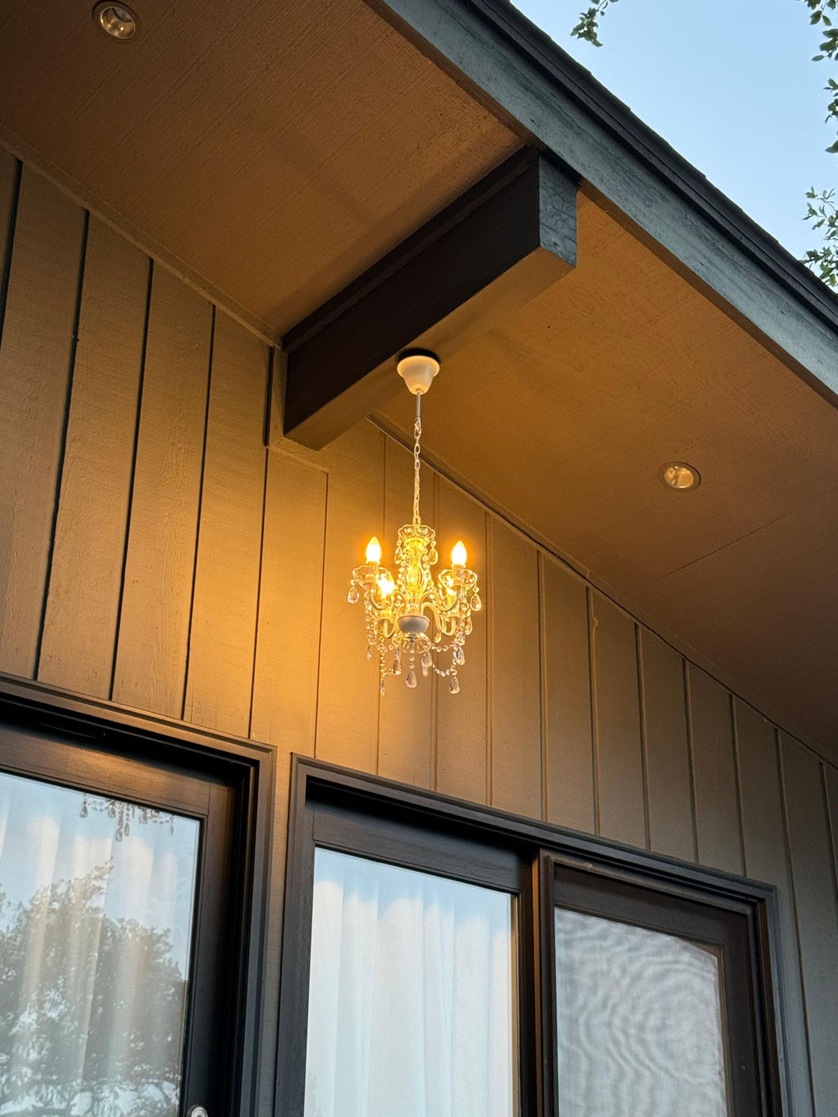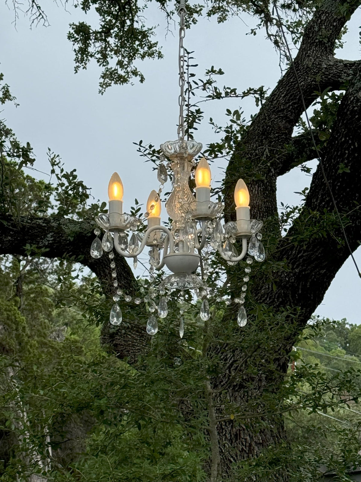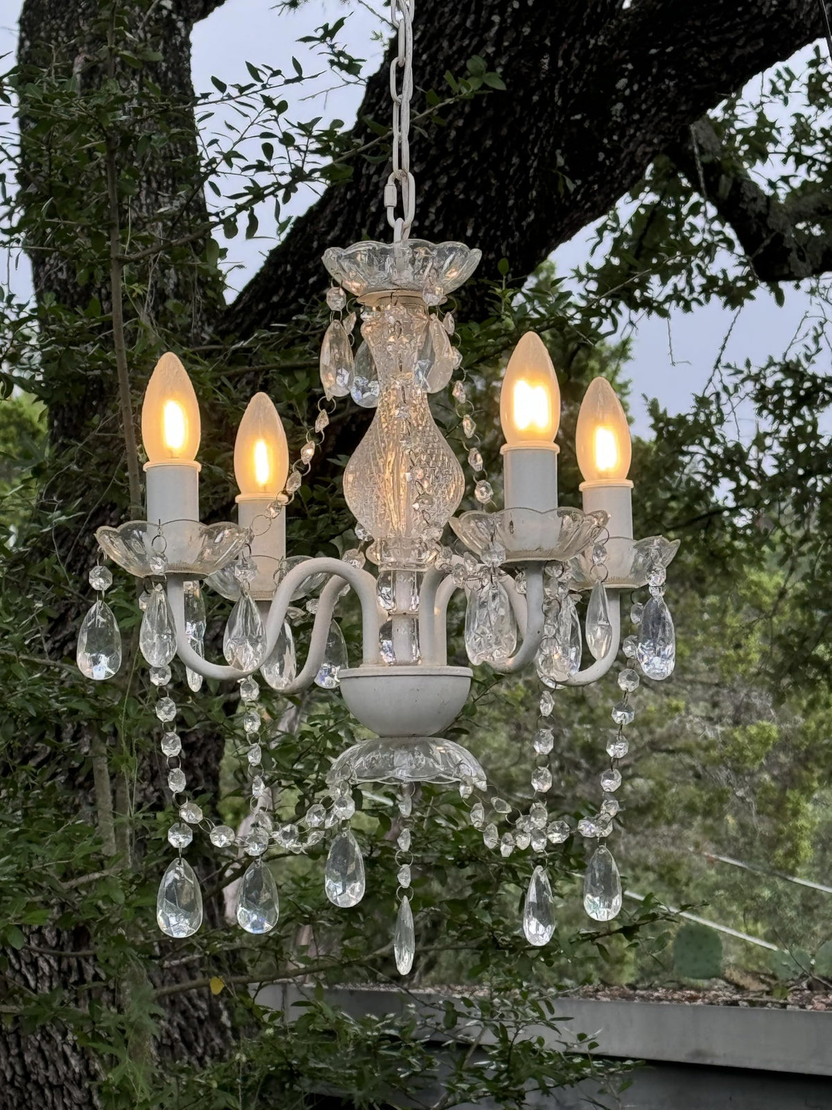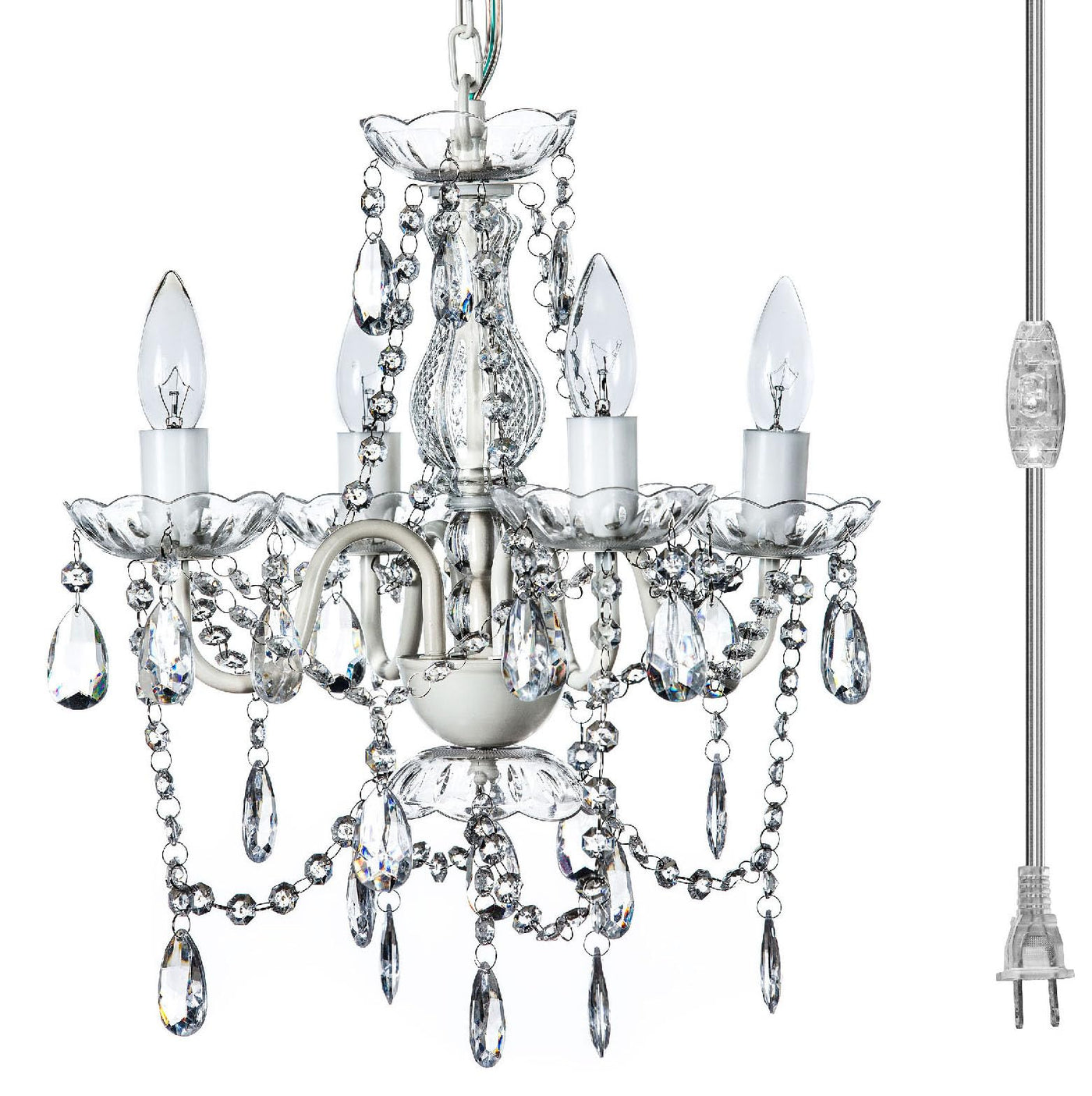 Brink House Outdoor 4 Light Plug-In Crystal White Chandelier H17 Xw15 , White Metal Frame, Clear Acrylic Crystals, And Low V