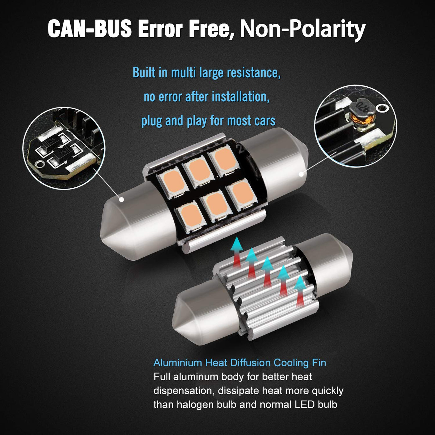 Brishine De3175 Led Bulbs, Super Bright Purple 2835 Chipsets Canbus Error Free 31Mm 1.25 Festoon De3021 De3022 3175 6428 Led