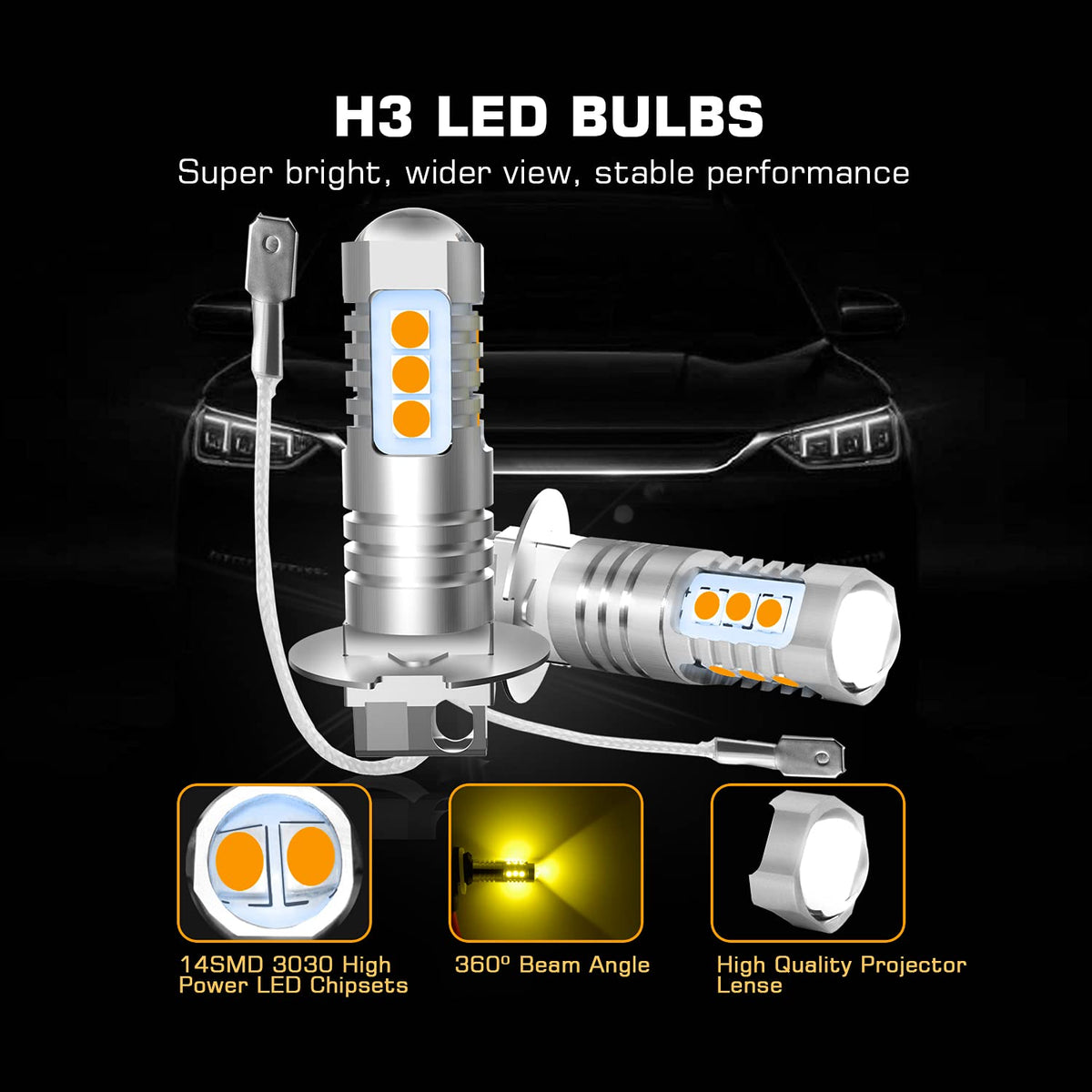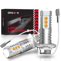 Brishine H3 Led Fog Light Bulbs Pack Of 2, Extremely Bright 3030Chips H3 Led Bulbs With Projector For Car Fog Lights, Daytime Running Lights Drl (Golden Yellow)