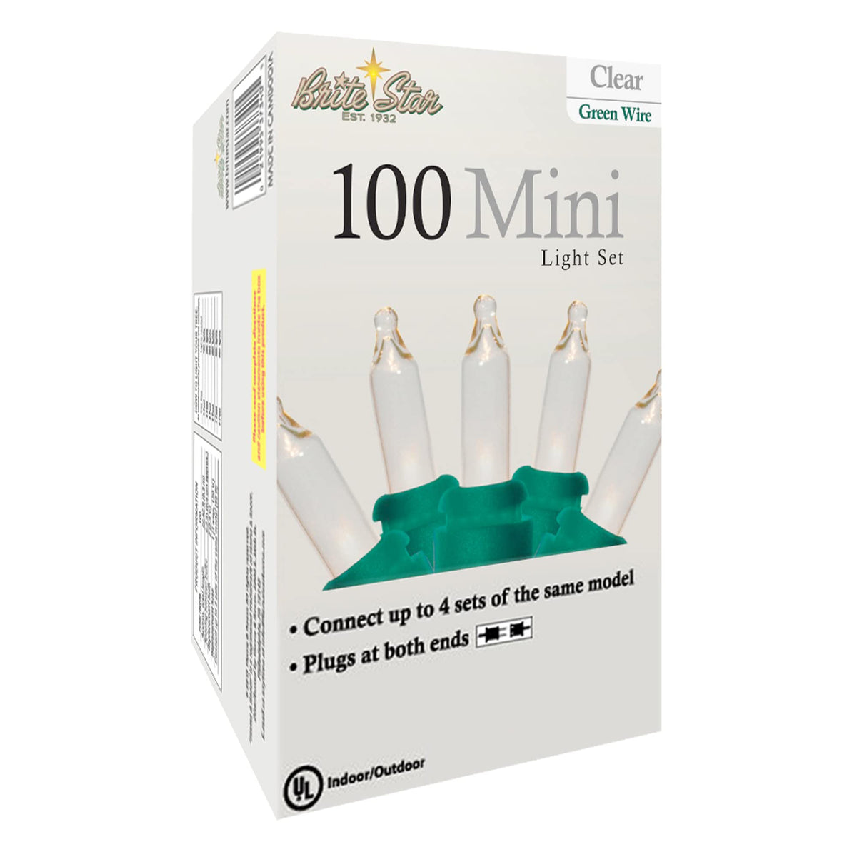 Brite Star 100 Count Mini String Christmas Lights, Clear - 22 Feet Indoor/Outdoor Christmas Tree Lights With Green Wire
