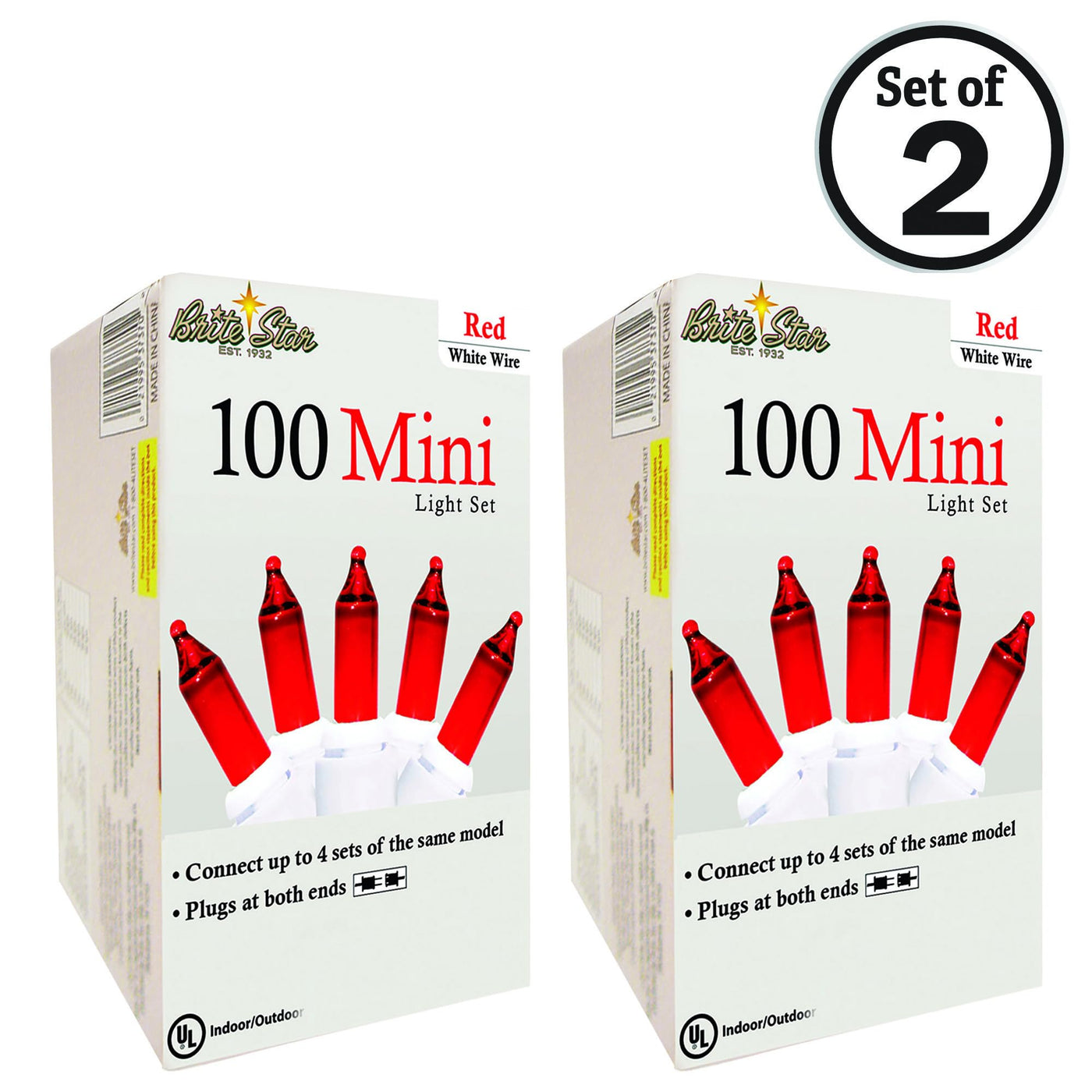 Brite Star 100 Count Mini String Christmas Lights Red - 22 Feet Indoor/Outdoor Christmas Tree Lights With White Wire (Set Of 2)