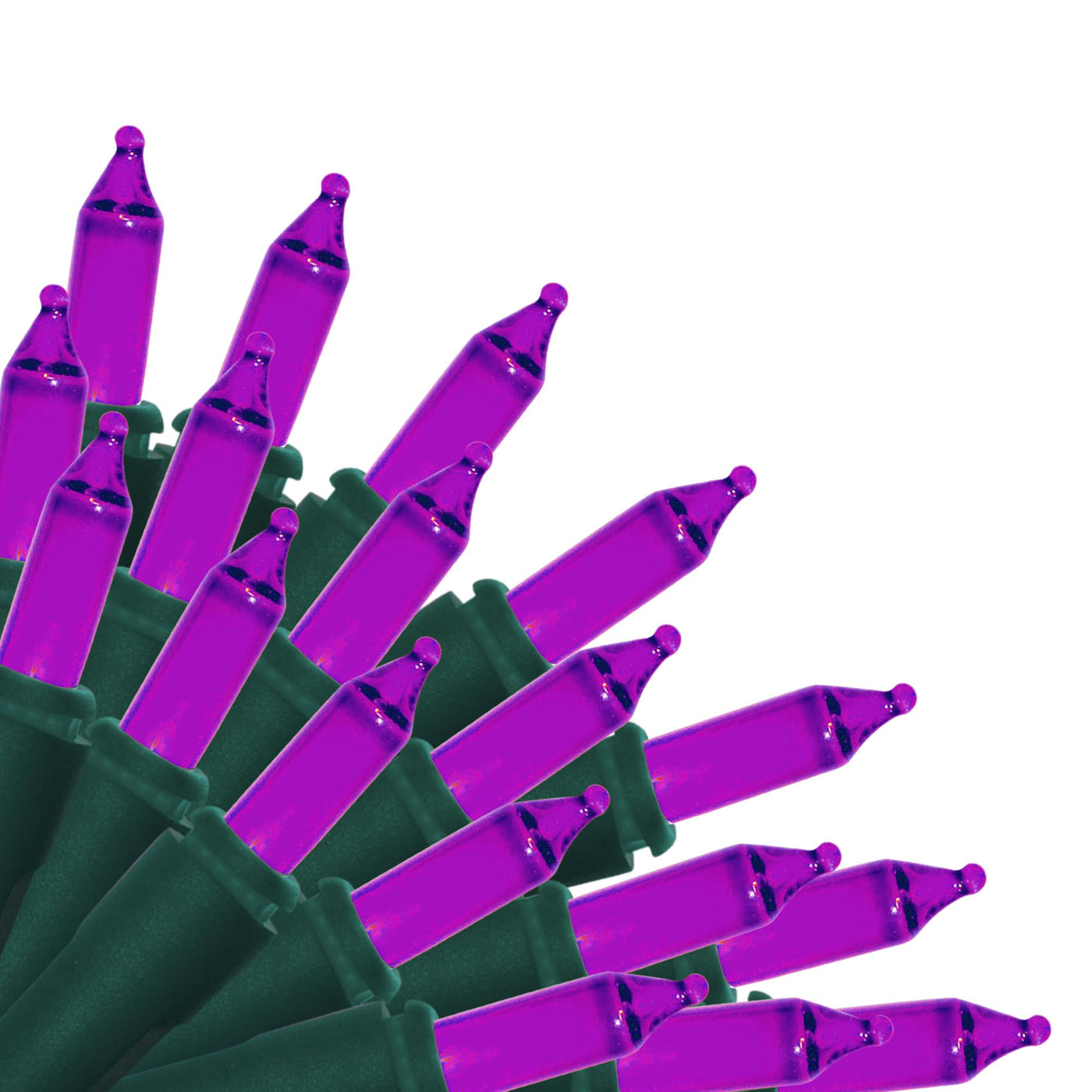 Q: What color are the lights?A: The Brite Star Mini String Christmas Lights emit a warm purple glow and come with a green wire.