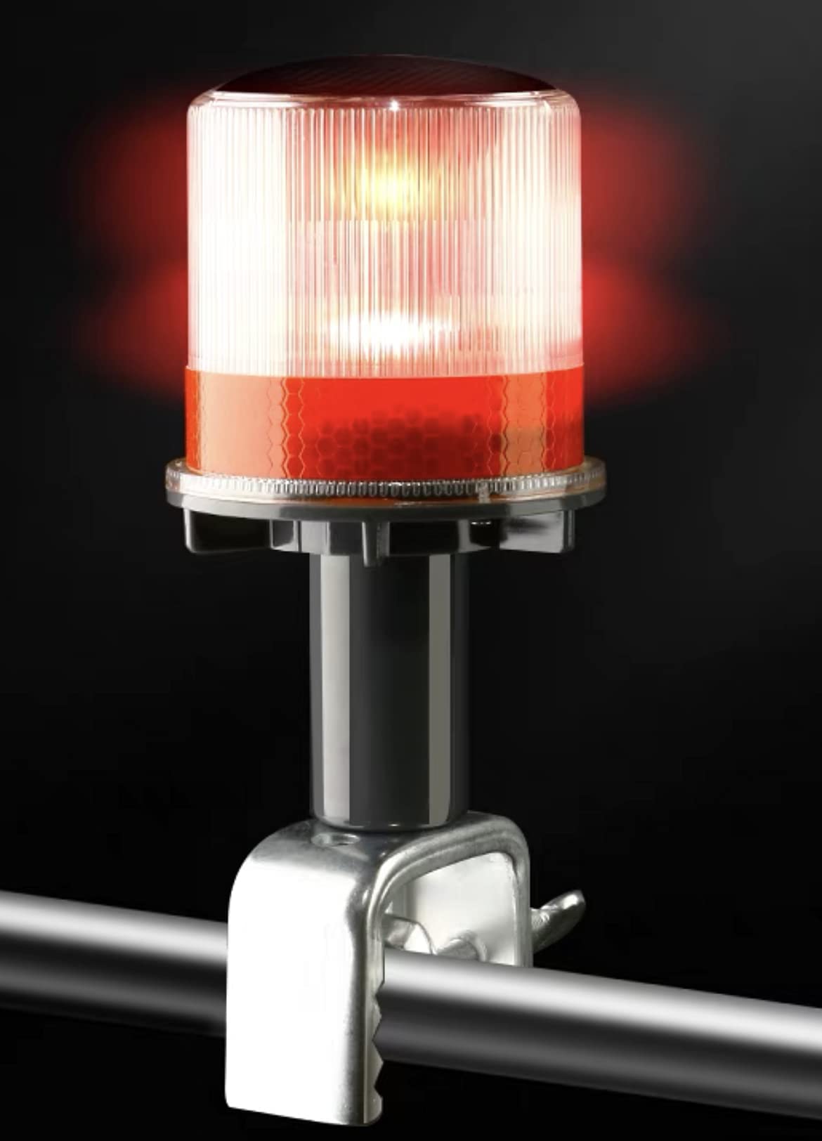Q: How does the solar-powered strobe warning light work?A: The solar-powered strobe warning light charges during daylight hours and automatically activates at dusk. It features a high-capacity internal battery that ensures all-night operation, providing either a flashing or constant-on mode selected via a waterproof switch.