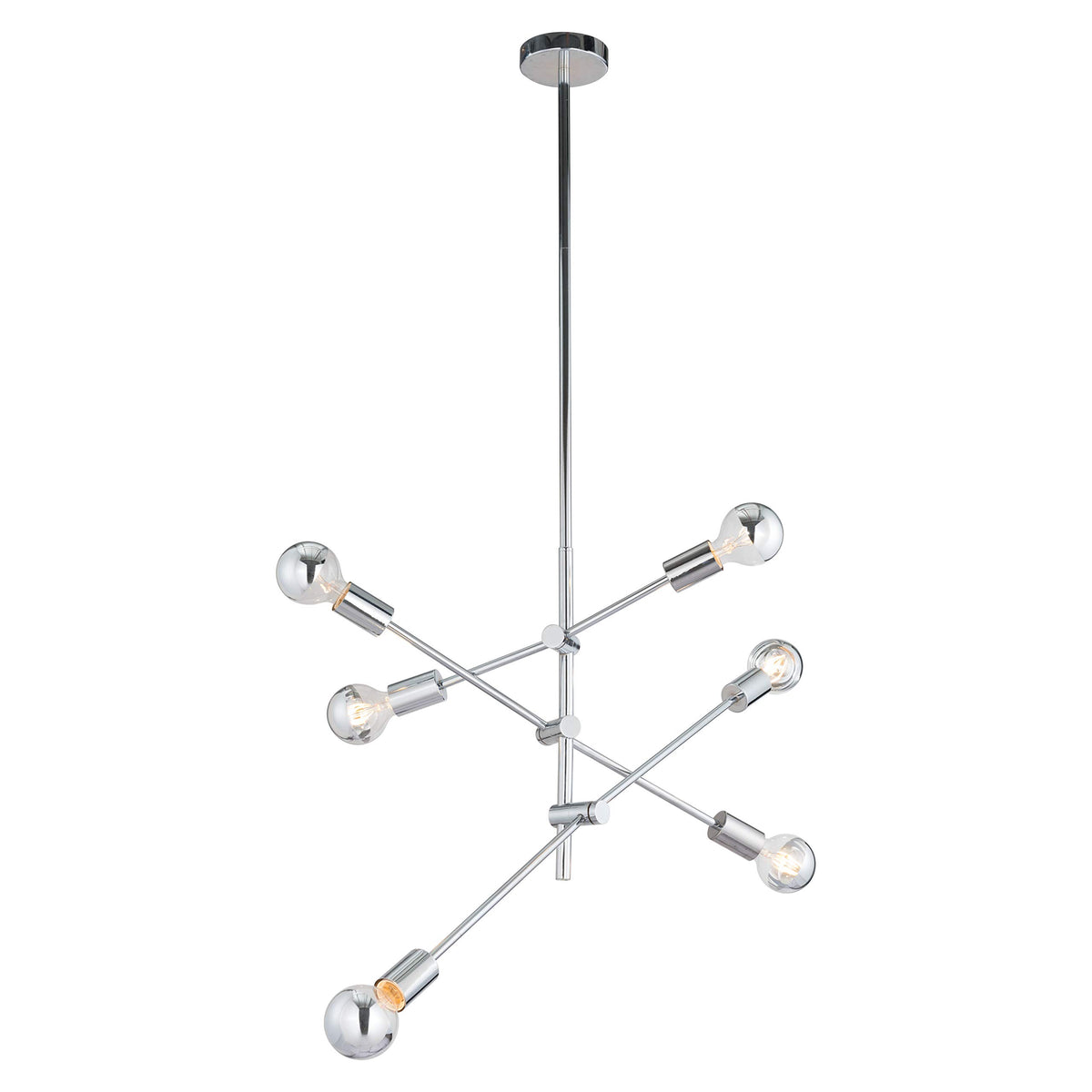 With its modern shape and adjustable arms, our artistic mobile-like chandelier is as sculptural as it is functional. Flexibility in design allows you to customize the light and the look. Make a bold statement by placing in a loft space, over a kitchen island or dining table. Bulbs are included.