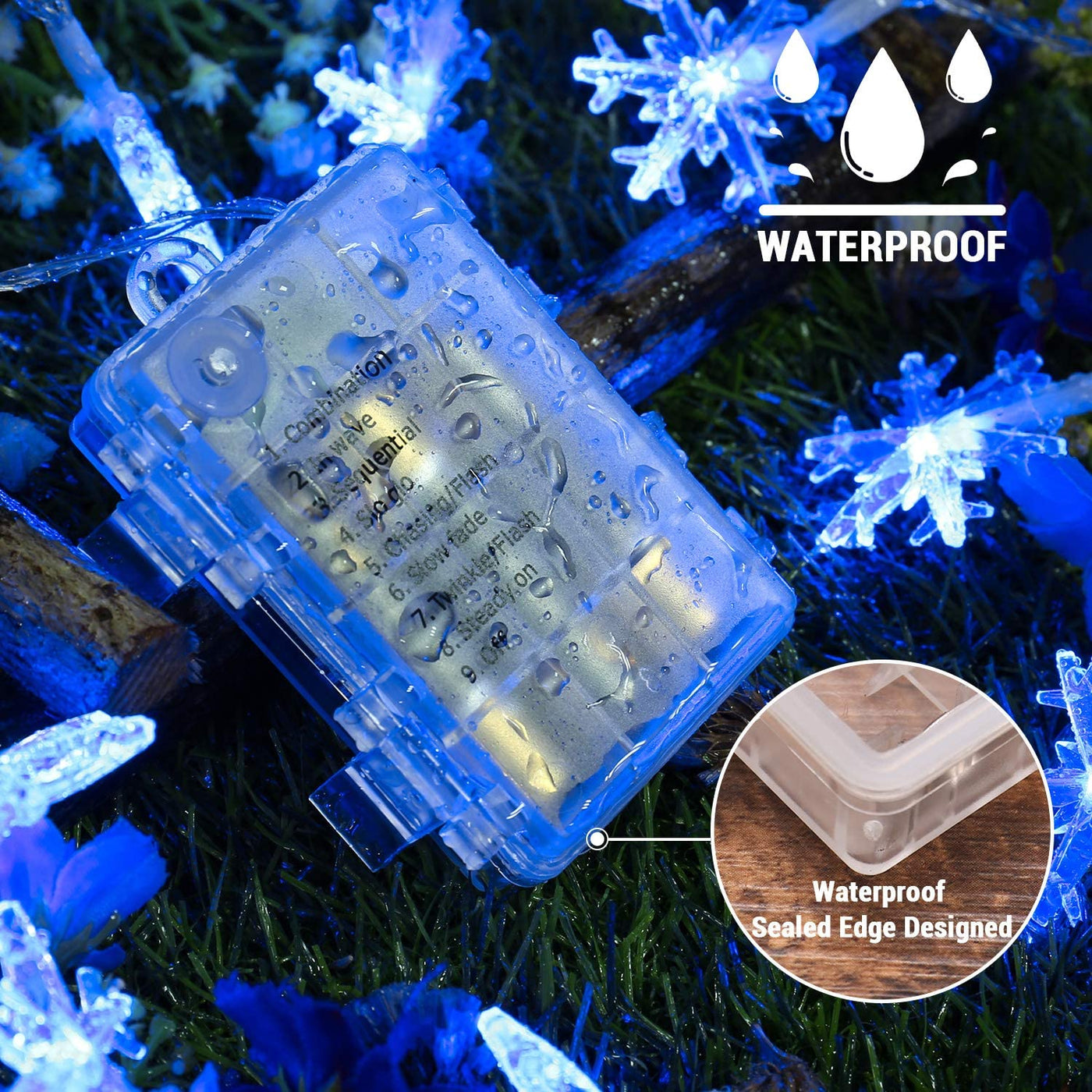 Brizlabs Blue Snowflake Lights, 40 Led 16.08Ft Snow Flake Christmas Lights With Remote, Battery Twinkle String Lights, 8 Modes Xmas Lights Waterproof For Outdoor Indoor Wedding Party Window Decor