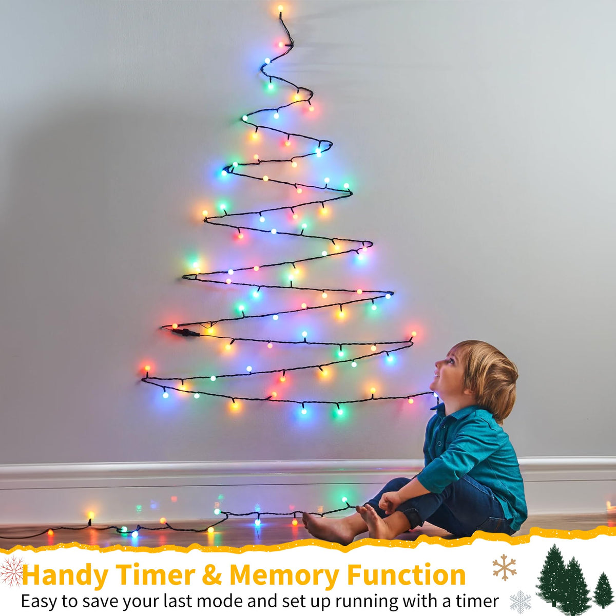 Features: Extendable End-To-End Up To 2 Sets. 2-In-1 Multi-Function Led Berry Christmas Lights, Color Changing-Warm White & Multicolor Can Be Chosed In One String Lights For Excellent Decorations! Built-In Memory Function, Remember Your Last Mode, No Need To Reset Every Time, Just Set Your Favorite Mode And Enjoy. 100%-75%-50%-25% 4 Level Brightness Dimmable, Adjust To Get The Right Brightness To Fit Moment Like Decoration, Reading Or Kids' Sleeping Time Etc. 11 Lighting Modes With Selectable Dual Colors, Amazing Christmas Decoration With Funny. Built-In Timer Function, 3 Timers Are Available For You To Choose From, Once Set, The Indicator Light On The Adaptor Will Turn On Green Lights, And The Light Will Auto On/Off Per Day Without Manual Operation. Ul Certify Black Power Adapter, Green Wire Indoor Outdoor Decorative String Lights, Match Well With Christmas Tree Etc., Bringing You Stunning Decoration! Come With 19 Key Remote, Up To 16.4-26.25Ft Wireless Range Specifications: Total Length: 82.4Ft Lighted Length: 66Ft Lead Length: 16.4Ft Bulb Space: 0.33Ft Waterproof: Ip44 Voltage: 120V/60Hz Lights Color: Warm White & Multicolor Package Included: 1 X 200 Led Warm White & Multicolored Color Changing Globe String Lights 1 X User Manual 1 X Remote Controller