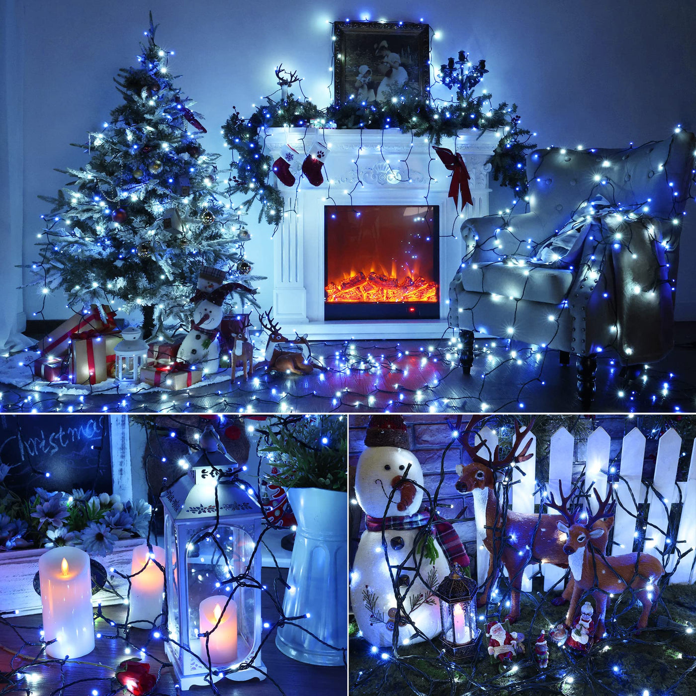 Brizled Blue & White Christmas Lights, 78.74Ft 240 Led Christmas Lights, Connectable 8 Modes Christmas Tree Lights, Outdoor Chri
