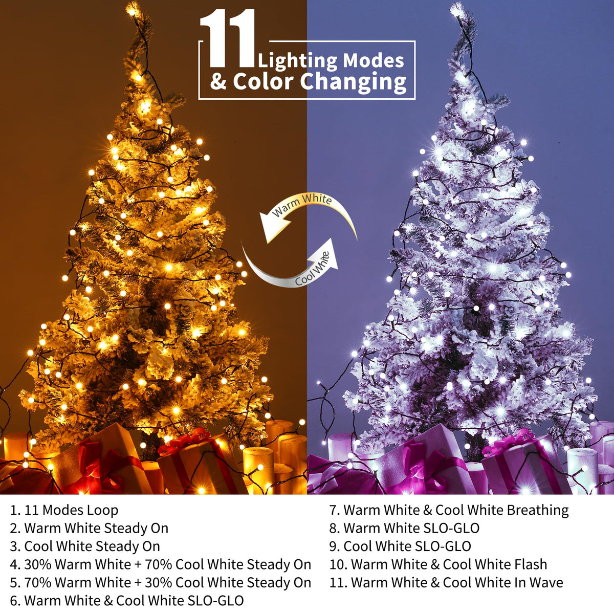Brizled Led Christmas Lights, 66Ft 200 Led Color Changing String Lights Connectable, Warm White & Cool White Christmas Lights, D