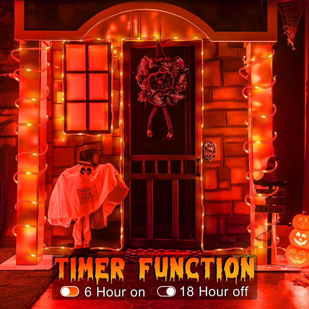 Brizled Orange Halloween Lights, 9ft 36 LED Halloween String Lights with Timer, Battery Powered Orange Rope Lights Indoor Outdoo