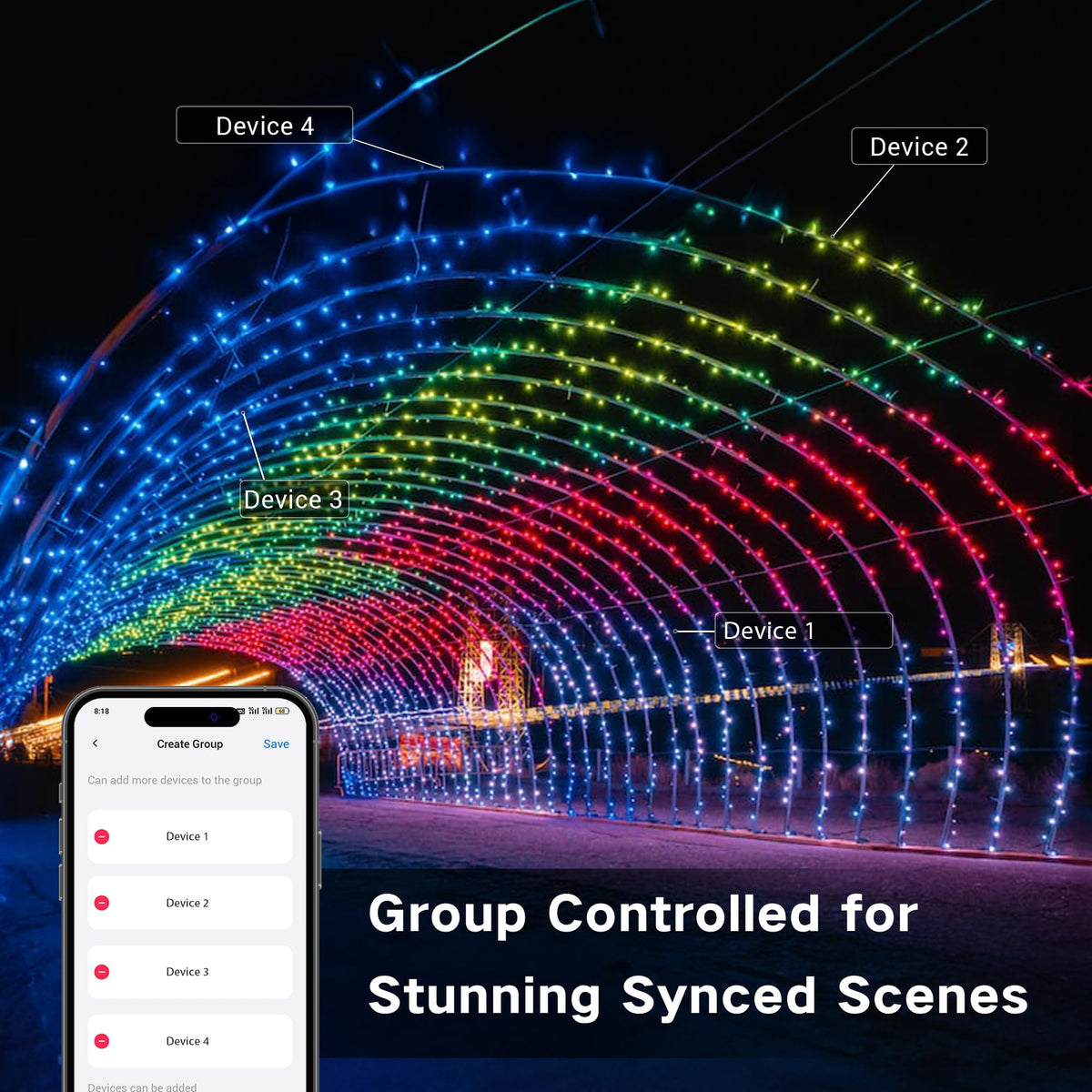 Group Control: Manage Multiple Smart String Lights Simultaneously For Synchronized Lighting Effects Across Different Areas In Your Home.