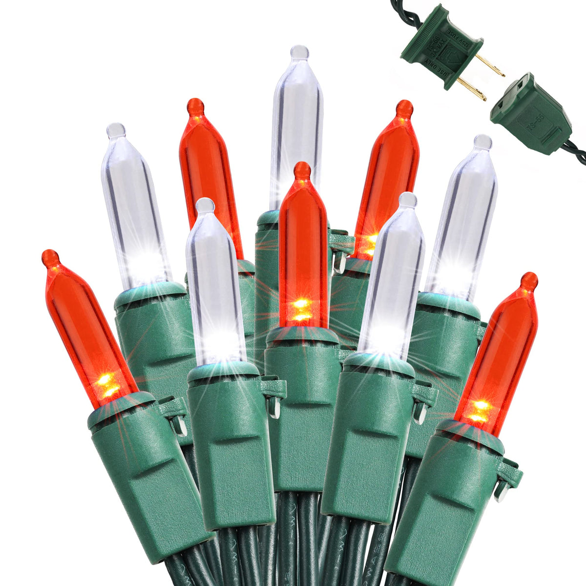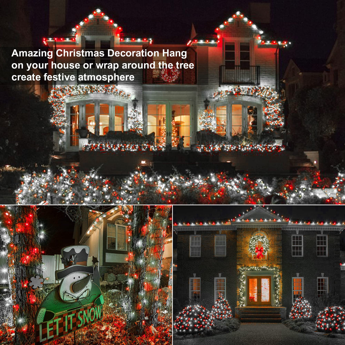 Brizled Red & White Christmas Lights, 33ft 100 LED Christmas Tree Lights, 120V UL Listed Mini String Lights Connectable, Plugin