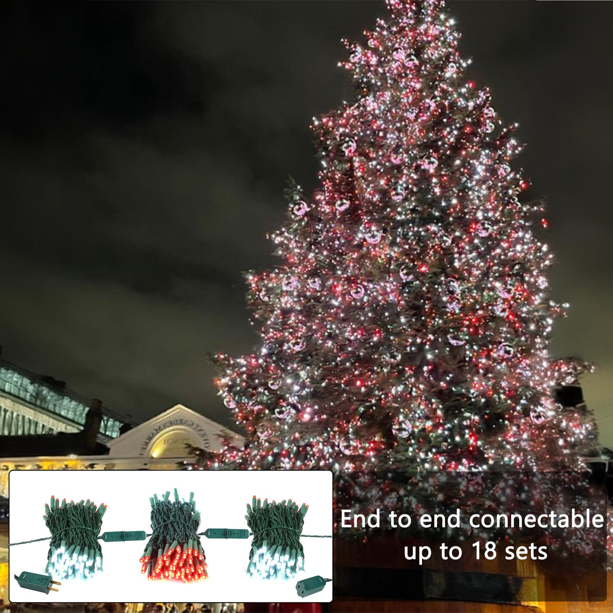 Q: Can I connect multiple sets of these lights together?A: Yes, you can safely connect up to 18 sets of the Brizled Red & White Christmas Tree Lights end-to-end, allowing for a total decor length of up to 594 feet using one plug, making them ideal for larger holiday displays.