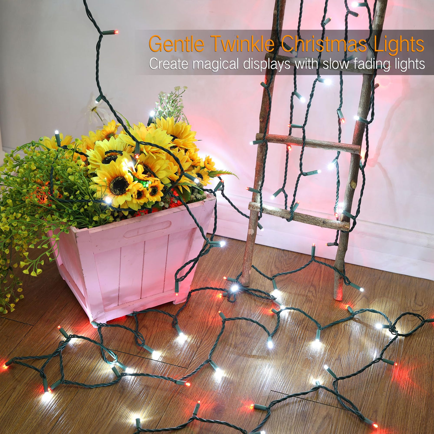 Brizled Red & White Christmas Tree Lights, 33Ft 100 Led 5Mm Wide Angle Gentle Twinkle Christmas Lights, 120V Ul Certified Connectable Christmas String Lights Outdoor Xmas Light For Christmas Tree Home