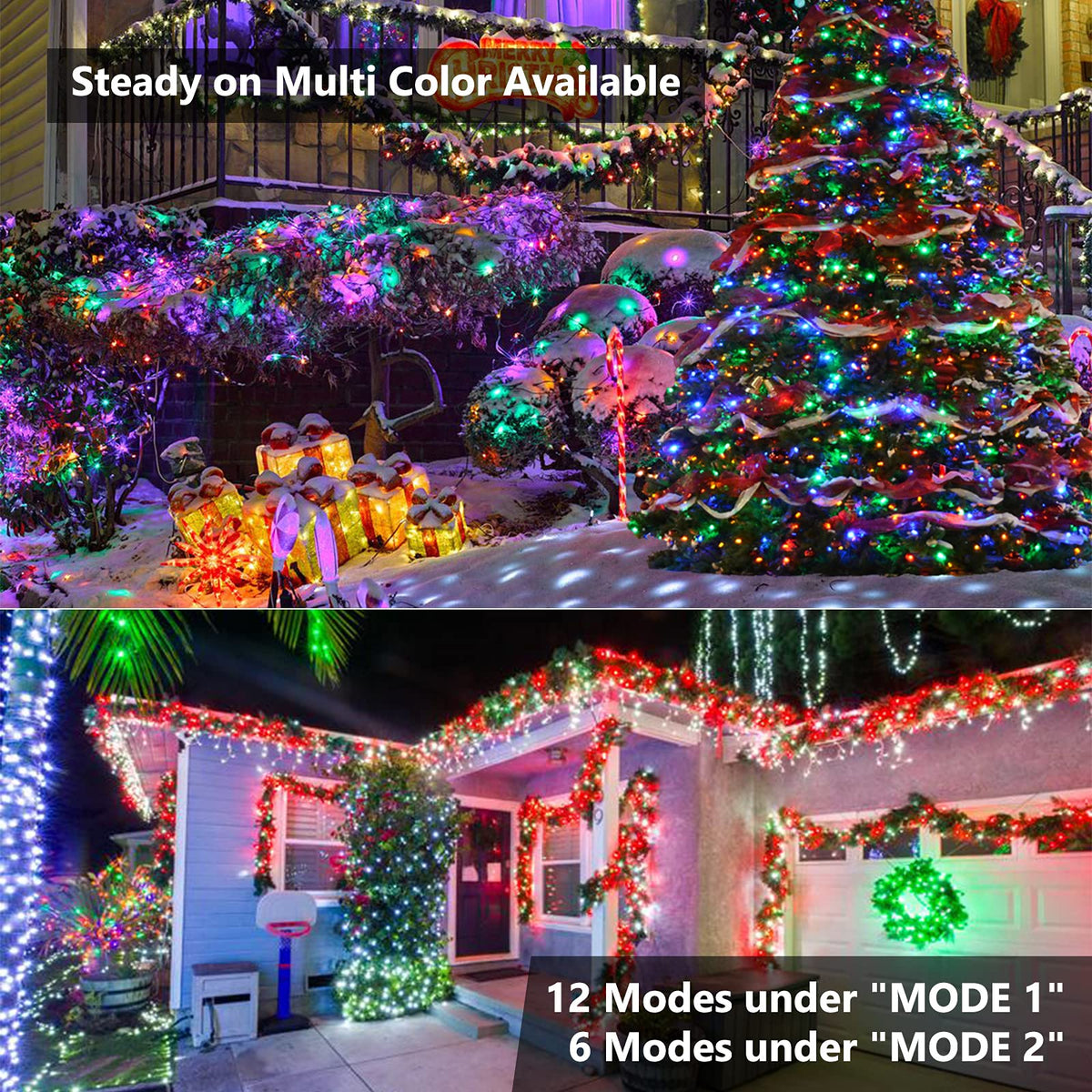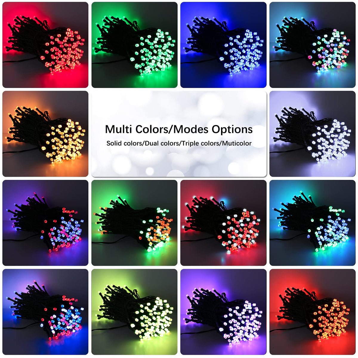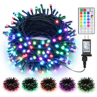 Features:Memory FunctionWill save the last lighting modes, no need to reset.(Note: Asyn mode without memory function)Timer Functions:- 4H: 4hrs on, 24hrs off- 6H: 6hrs on, 18hrs off- 8H: 8hrs on, 16hrs offSet a timer according to your needs, and lights will be on/off as scheduled once the timer is set up.Speed Adjustable and Dimmable3 Levels to adjust lights brightness, bright, soft & dim. 4 Levels speed to adjust modes. perfect suit for diverse various occasions.Specifications:Total Length: 115ftLighted Length: 98.67ftLead Length: 16.4ftBulb Space: 0.33ftLED Quantity: 300 LEDWaterproof: IP44Wire Color: Green WireLights Color: RGBPackage Included:1 x 300 LED RGB String Lights1 x User Manual1 x Remote Controller