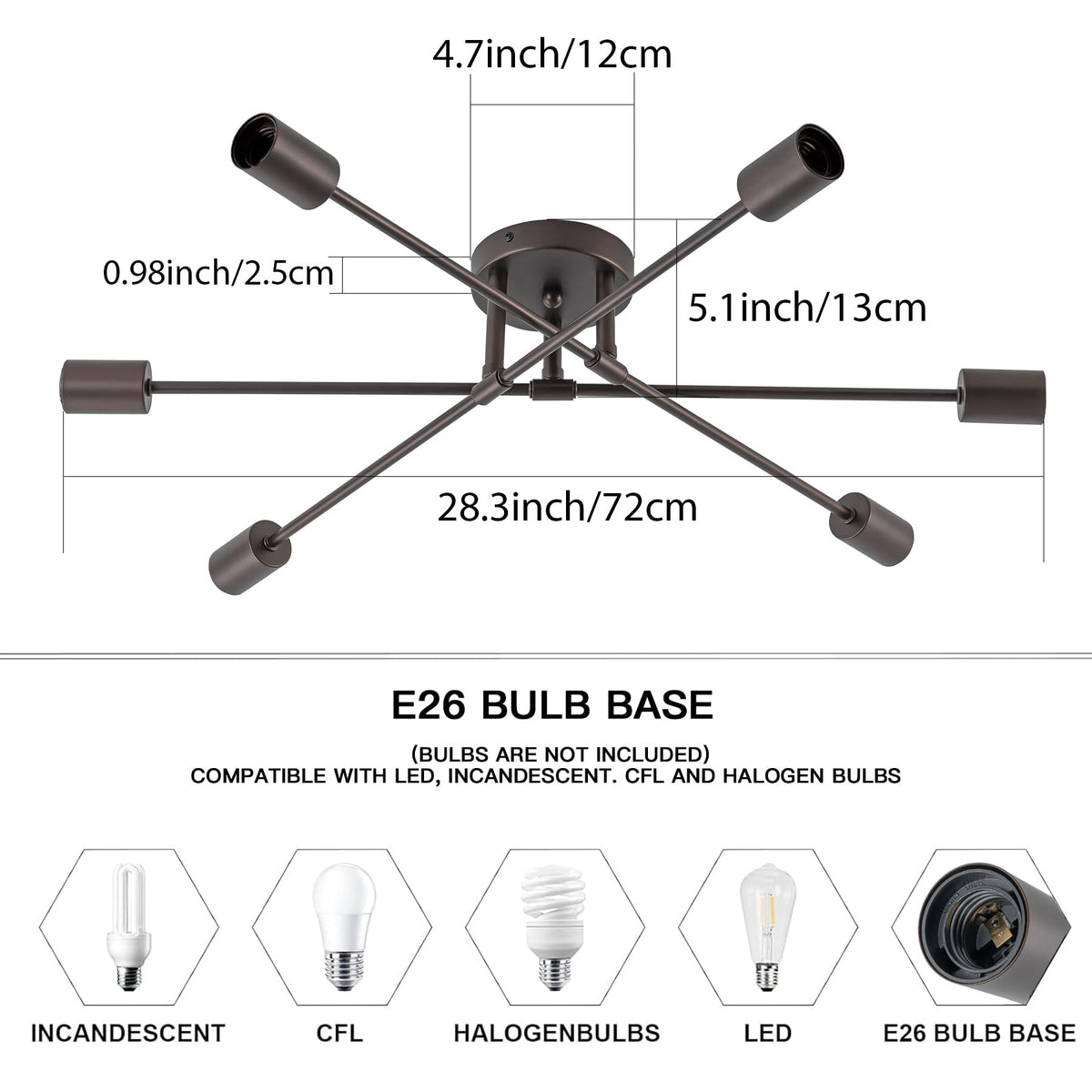 Brknit 6-Light Sputnik Chandeliers, Oil Rubbed Bronze Modern Semi Flush Mount Ceiling Light With E26 Base, Mid Century Industria