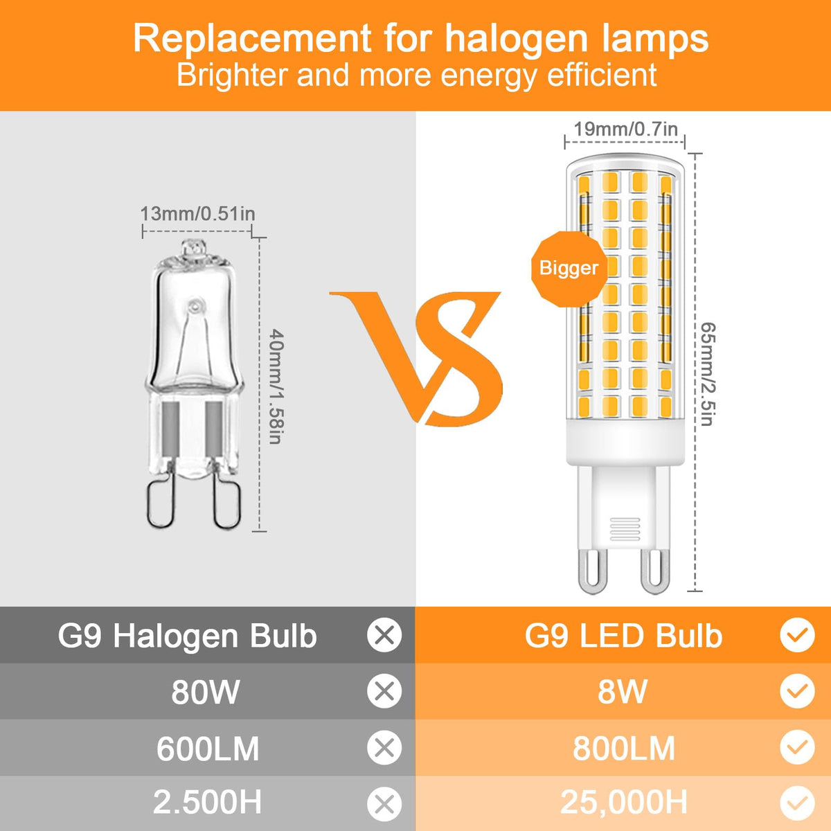Brolskun Dimmable G9 Led Bulb 3000K Warm White,T4 G9 8W Replacement For 80 Watts Halogen,Ceramic Bi Pin Base,120V 800 Lumen G9 L