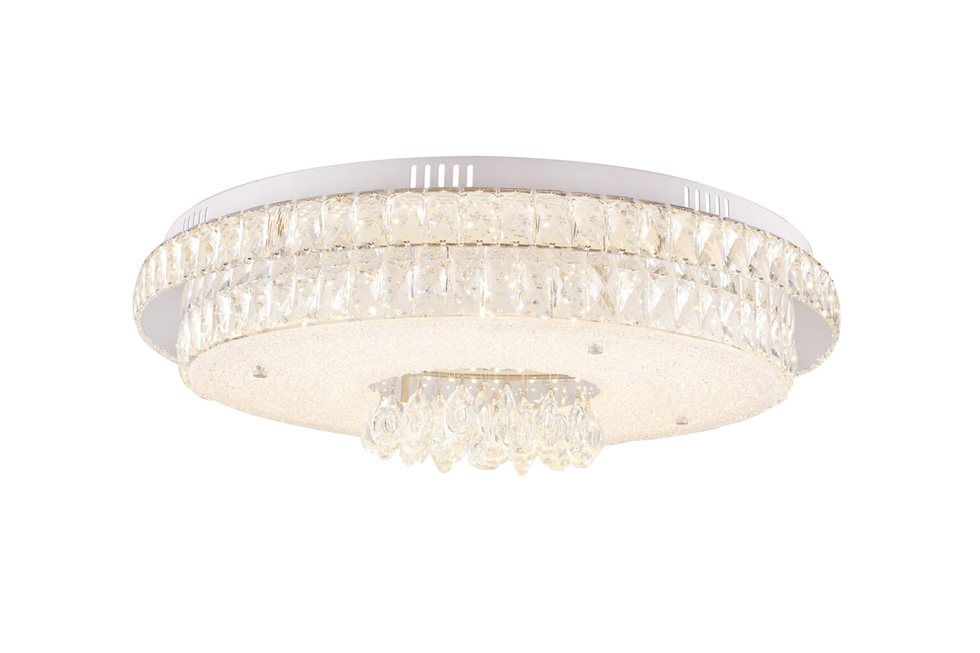 Q: What materials are used in this flush mount light?A: This flush mount light is made from high-quality stainless steel and features crystal accents, providing durability and a modern aesthetic.