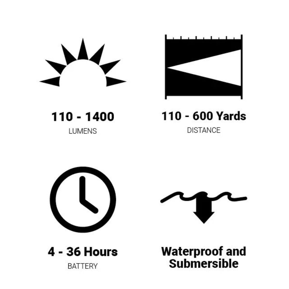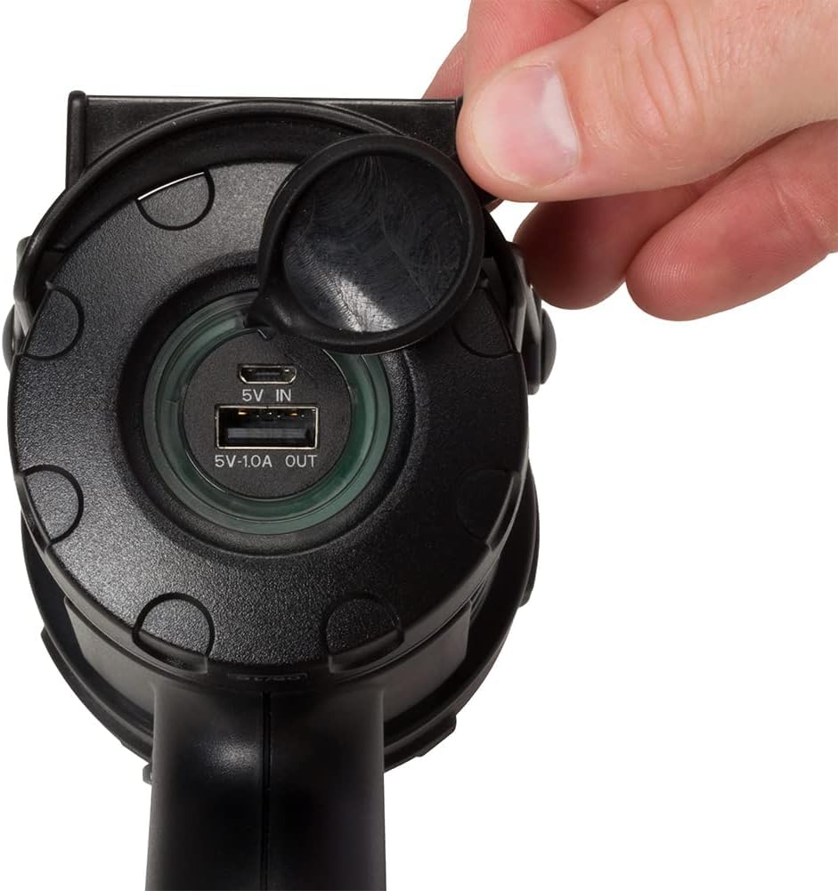 The Browning High Noon USB Rechargeable Spotlight features a max 915 lumens USB rechargeable spotlight with Power Bank and reaches up to 550 yards. This spotlight is waterproof, submersible and floats on water and features multiple lighting modes.