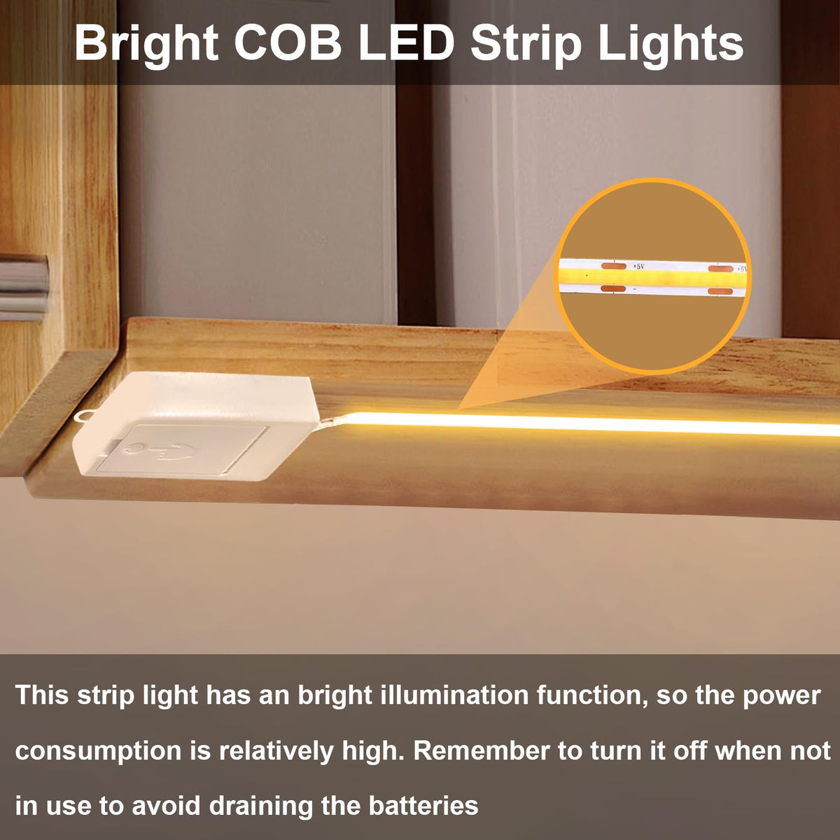 Q: Are these LED strip lights energy-efficient?A: Yes, the COB LED strip lights are designed to be energy-efficient, consuming less power while still providing powerful illumination, making them an ideal choice for battery-operated lighting.