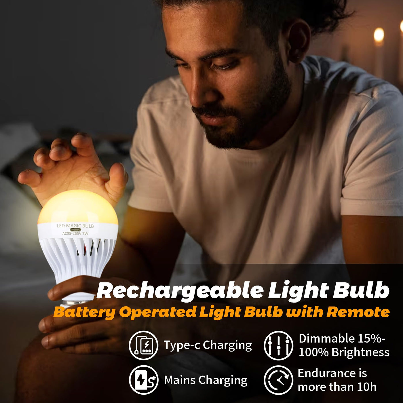 Energy-Efficient Rechargeable Light Bulbs With Remote Control. Our Battery-Operated Lamps Are Perfect For Providing Convenient Lighting Solutions In Any Room Of Your Home, Office, Or Workshop.With Led Technology, Our E26 Led Bulbs Consume Only 5 Watts Of Power And Offer Bright Illumination Without Compromising On Energy Efficiency. Our Warm Light Bulbs Create A Cozy Atmosphere And Are Ideal For Use In Sconce, Living Rooms, Bedrooms, And Hallways.Experience Peace Of Mind During Power Outages With Our Emergency Lights For Home. Our Battery-Operated Light Bulbs With Remote Control Provide Convenient Operation From A Distance, Allowing You To Adjust The Brightness And Switch The Lights On Or Off With Ease.Our Rechargeable Light Bulbs Are Designed To Be Long-Lasting And Reliable, Making Them A Cost-Effective And Environmentally Friendly Lighting Solution. With Their Usb Rechargeable Feature, You Can Easily Power Them Up Whenever Needed.In Addition, Our Remote-Controlled Light Bulbs Offer Added Convenience And Flexibility, Allowing You To Customize The Lighting In Your Space According To Your Preferences. Whether You Need Emergency Light Bulbs For Power Outages Or Battery-Operated Lights For Your Lamps, We Have The Perfect Lighting Solution For You.Say Goodbye To Traditional Light Bulbs And Make The Switch To Our Rechargeable And Energy-Saving Options Today. Illuminate Your Space With Our Battery-Powered Light Bulbs That Are Designed To Provide Reliable Lighting Solutions Whenever And Wherever You Need Them.Choose Our Rechargeable Light Bulbs With Remote Control For A Hassle-Free And Eco-Friendly Lighting Experience. Stay Prepared For Any Situation With Our Emergency Bulbs For Power Outages That Offer Reliable Performance And Peace Of Mind.Don'T Let Power Outages Disrupt Your Daily Routine - Bsod Rechargeable Bulbs For Lamps And Enjoy Uninterrupted Lighting In Your Home Or Workspace. Whether You'Re Looking For Wireless Light Bulbs Or Bulbs That Work Without Electricity, We Have The Perfect Solution For You.Bsod Rechargeable Light Bulbs With Remote Control. Experience The Convenience And Efficiency Of Rechargeable Lighting Solutions For Your Home Or Office.