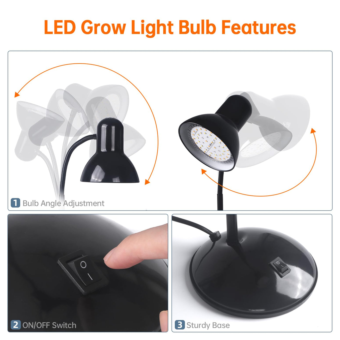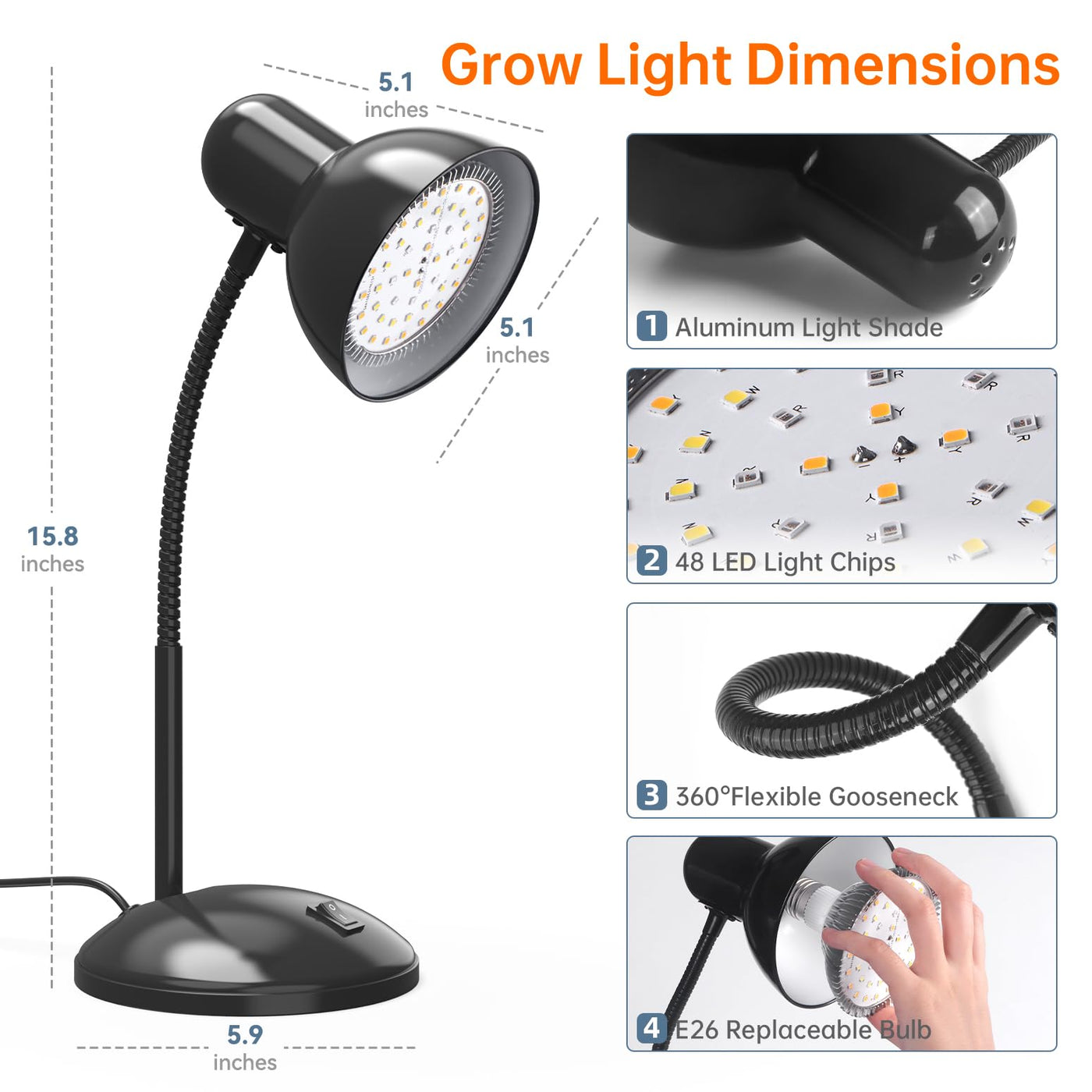 Bstrip Grow Light for Indoor Plants, Full Spectrum Desktop Led Plant Light Bulb with Gooseneck, Plant Grow Lamp for Indoor Home Office Plants, Tabletop Grow Light with Base, Small Grow Light