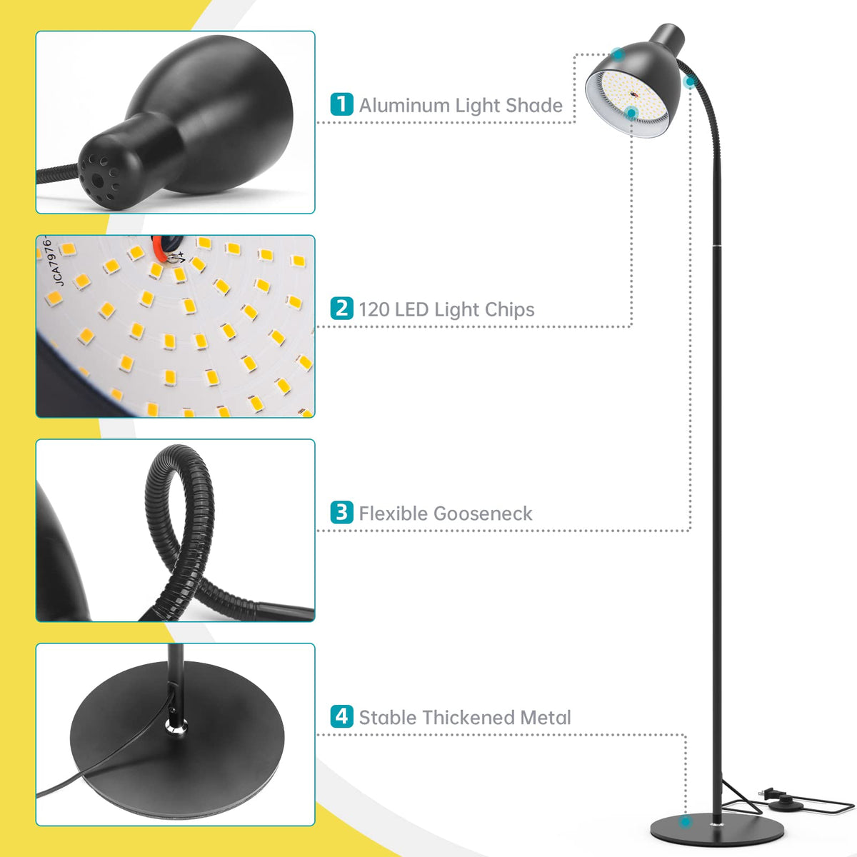 Q: How adjustable is the light angle on this grow lamp?A: The grow light has a 360° independently adjustable gooseneck design, allowing you to customize the light angle according to your plants' needs. This flexibility helps provide the ideal light intensity for each plant.
